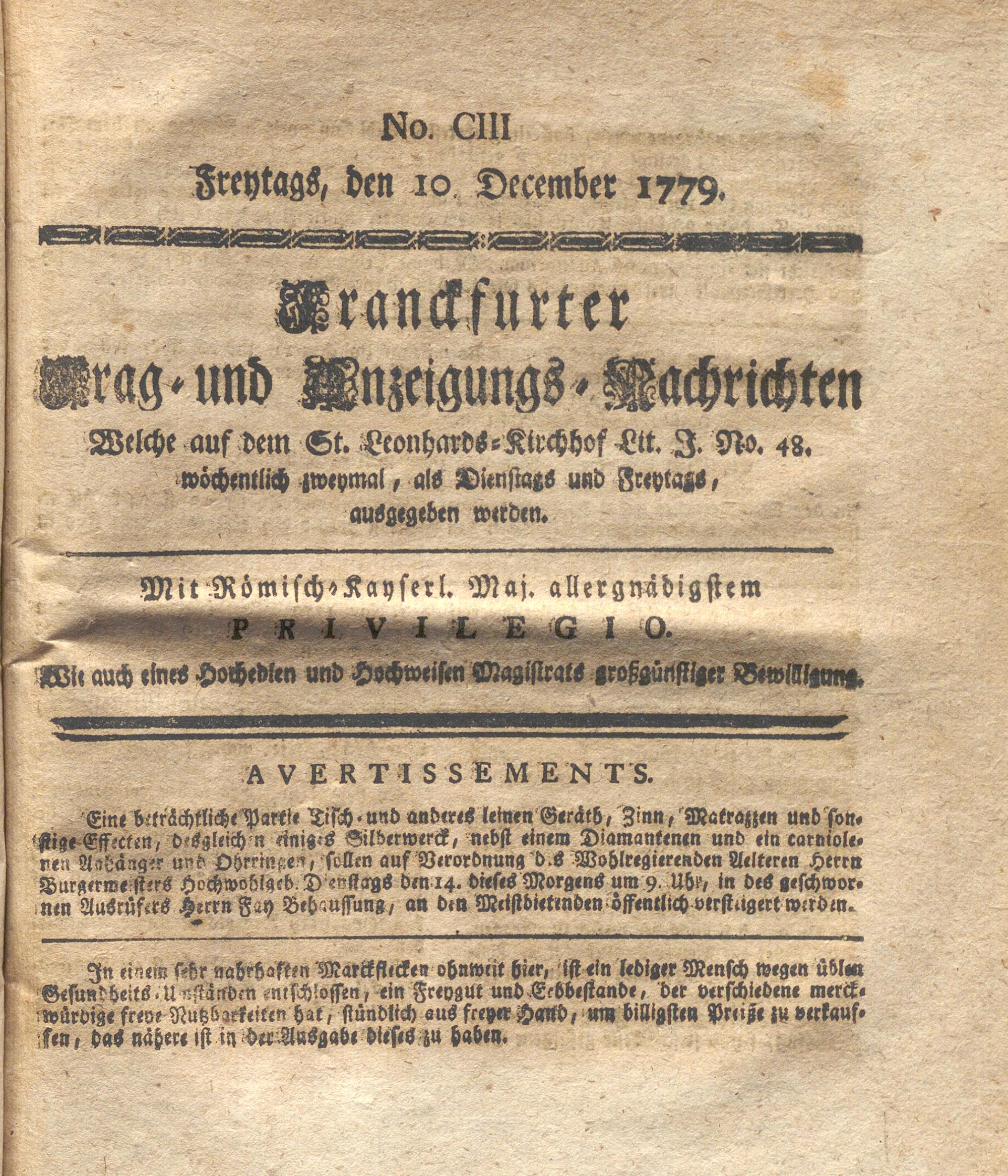 Franckfurter Frag- und Anzeige-Nachricht...