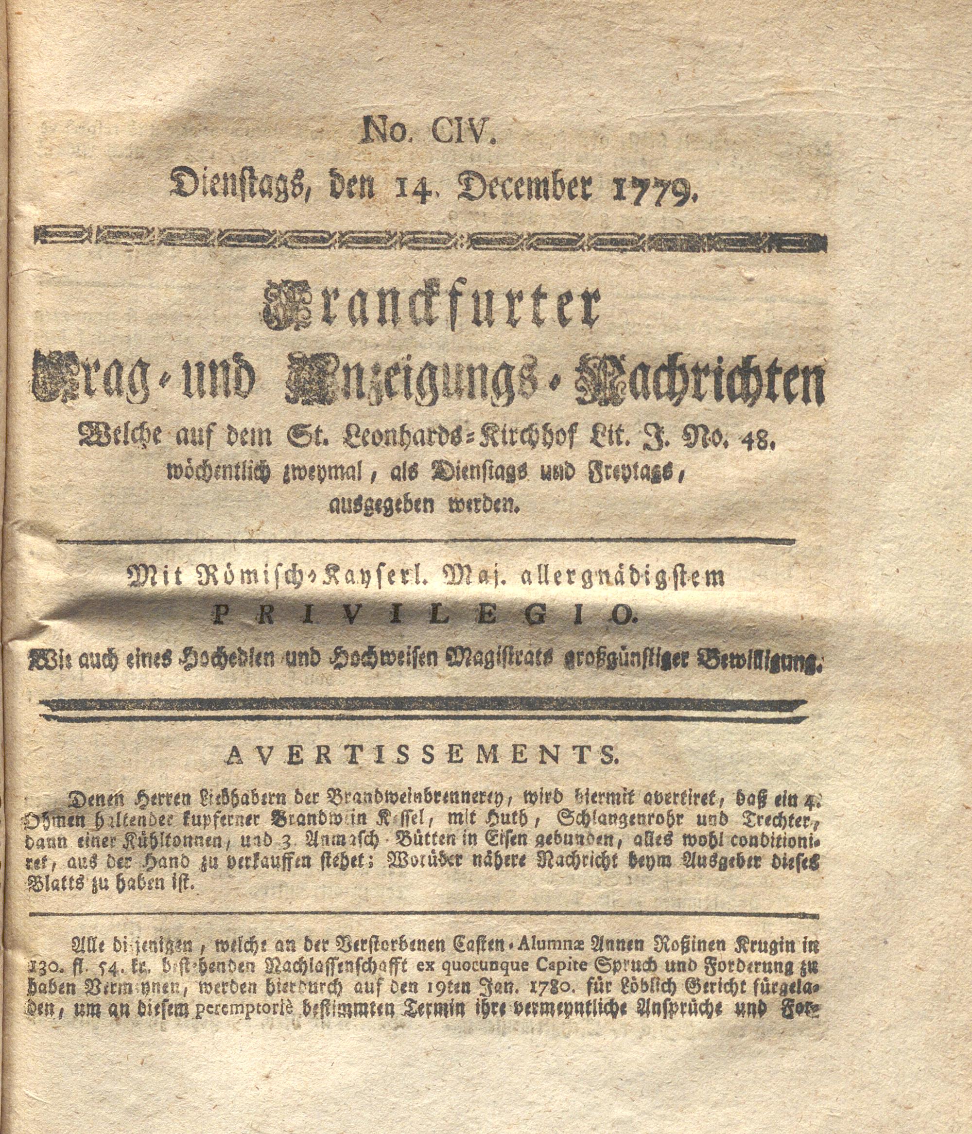 Franckfurter Frag- und Anzeige-Nachricht...