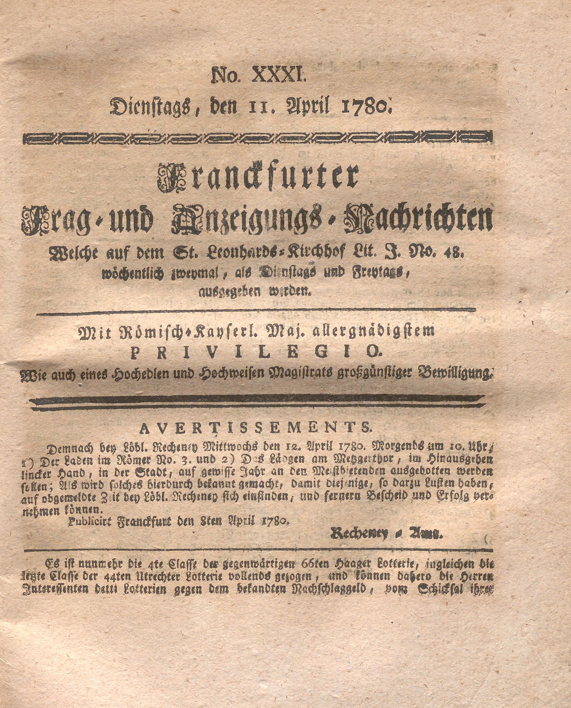 Franckfurter Frag- und Anzeige-Nachricht...
