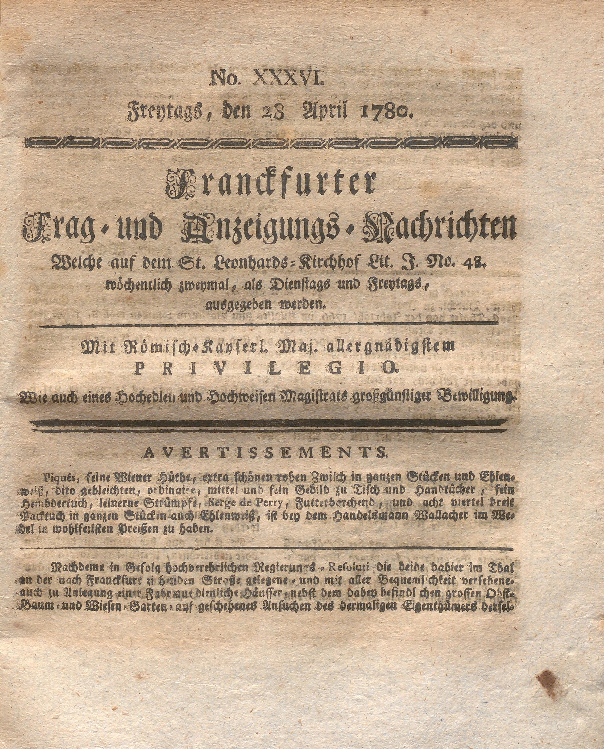 Franckfurter Frag- und Anzeige-Nachricht...