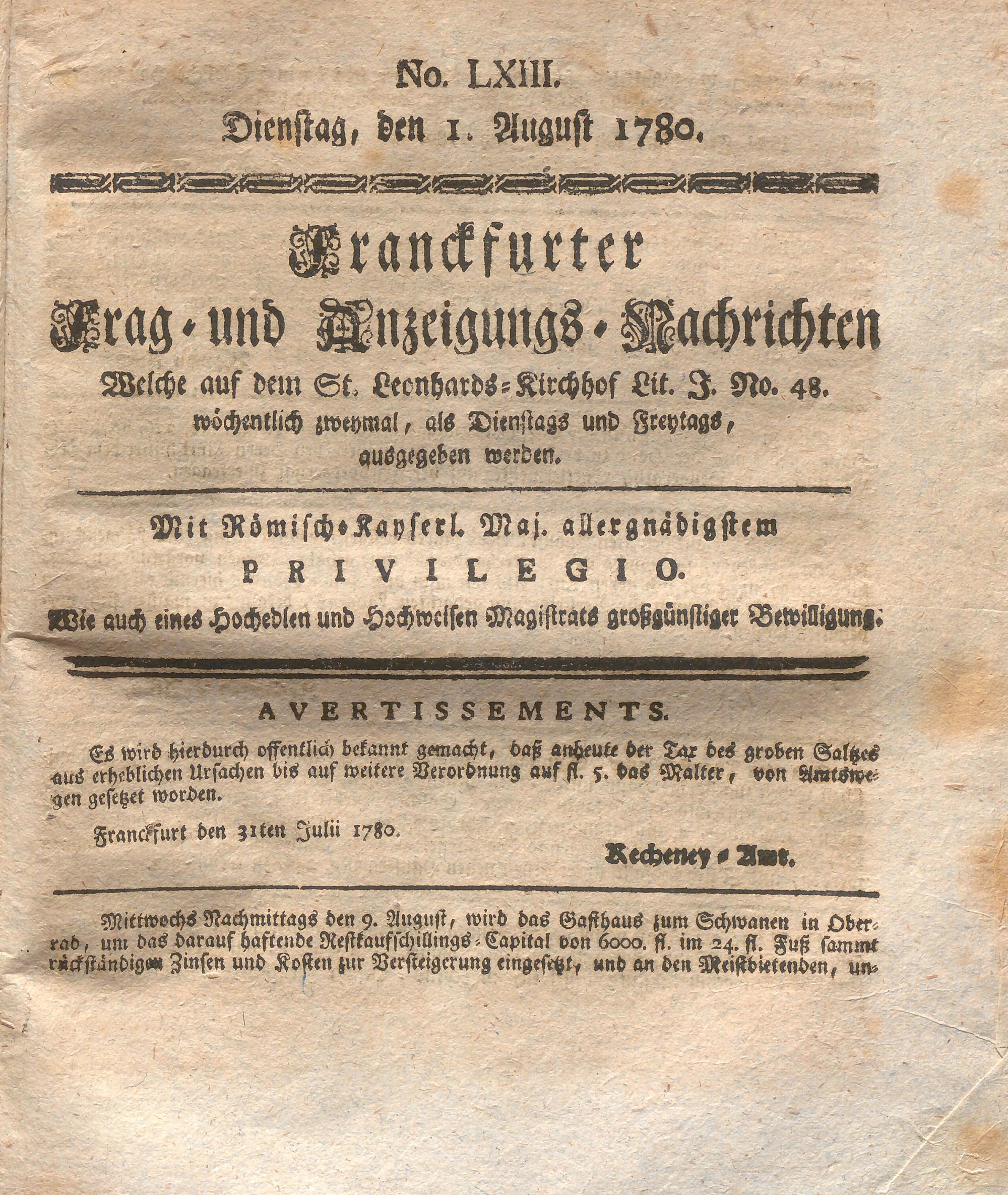 Franckfurter Frag- und Anzeige-Nachricht...