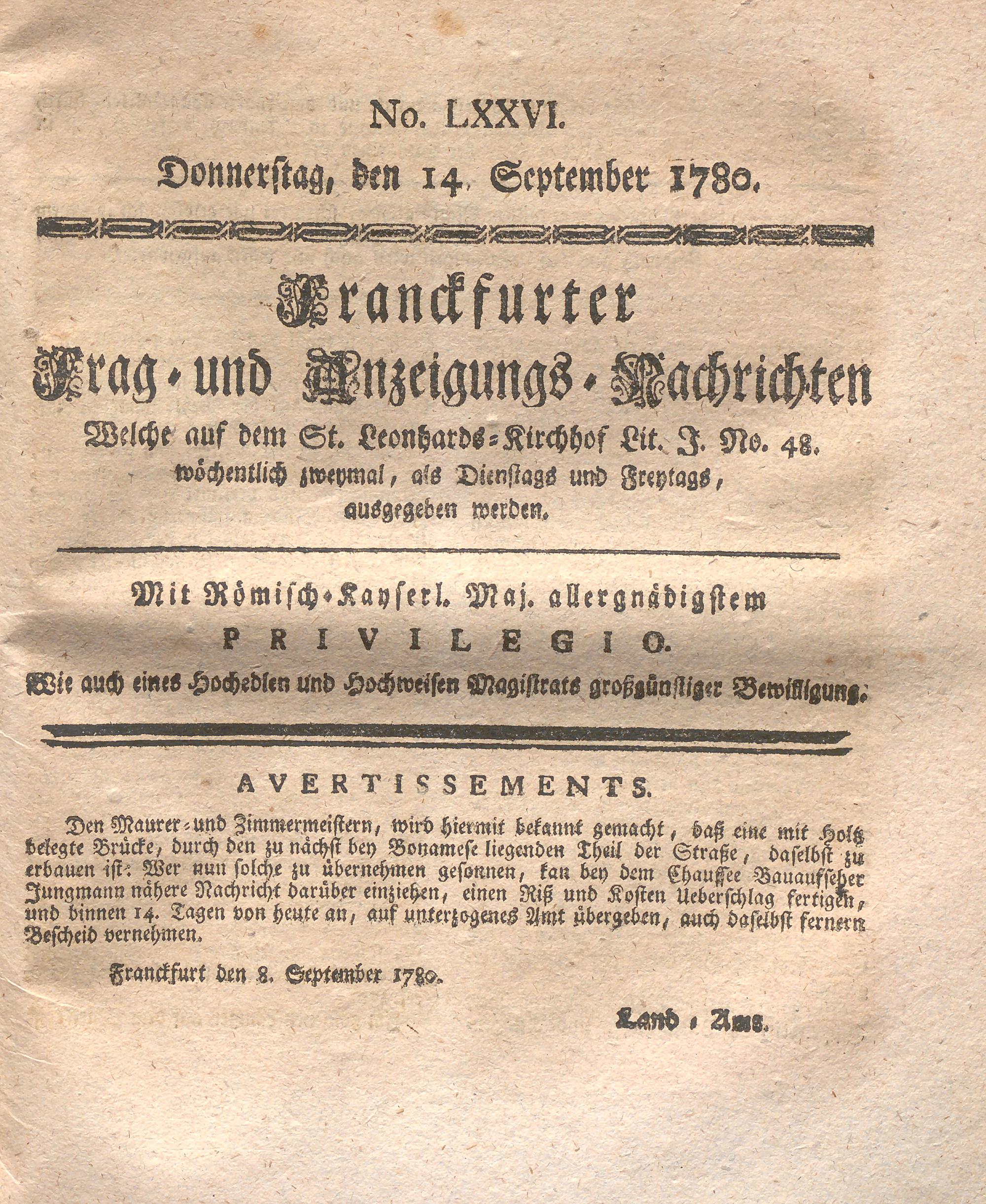Franckfurter Frag- und Anzeige-Nachricht...