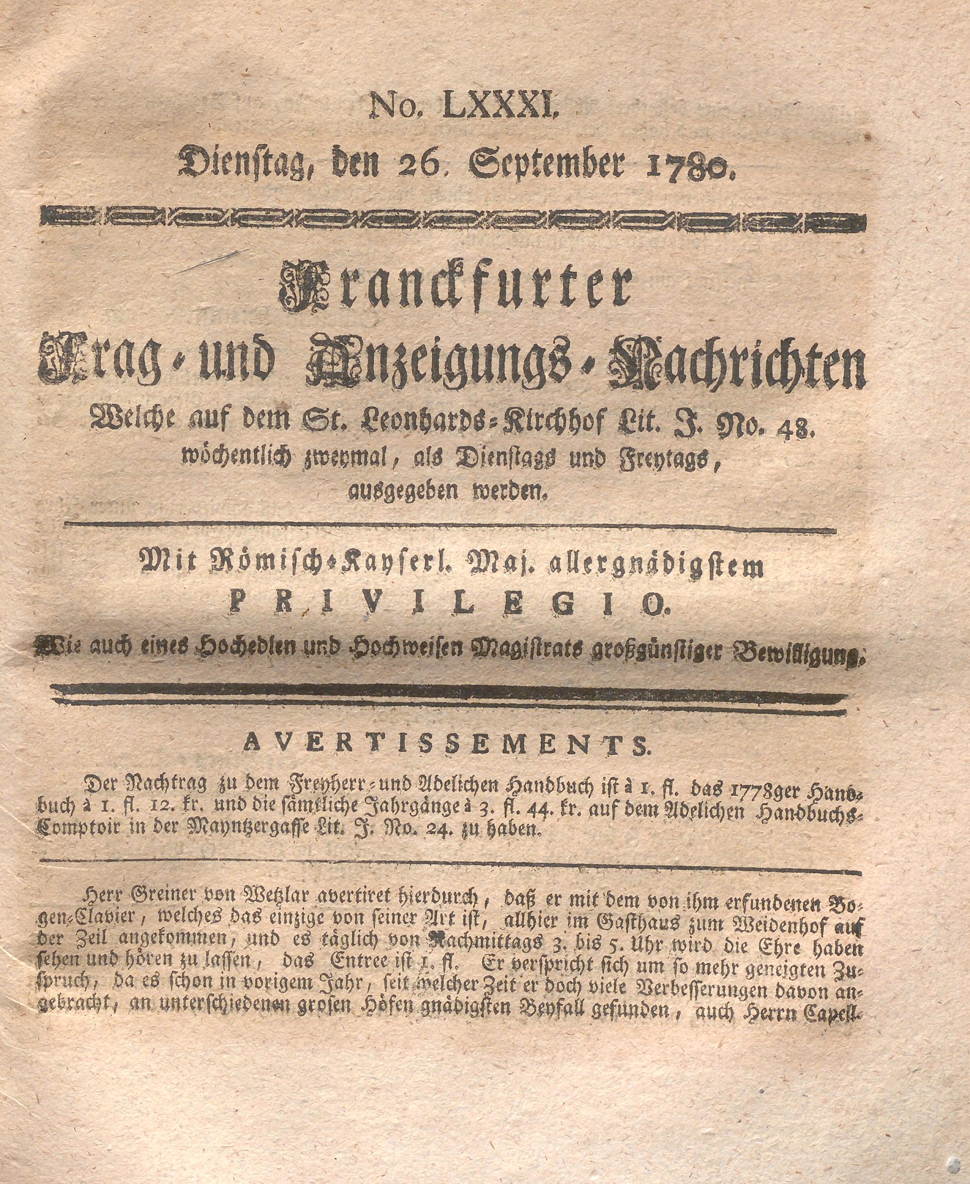 Franckfurter Frag- und Anzeige-Nachricht...