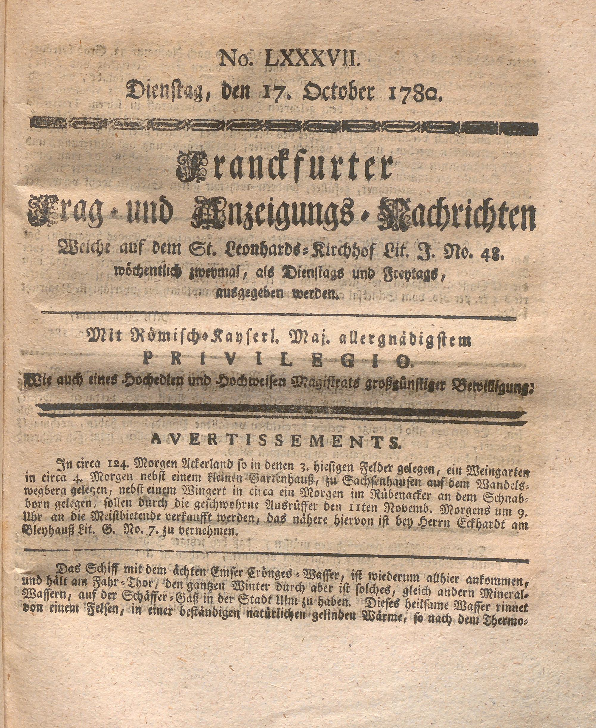 Franckfurter Frag- und Anzeige-Nachricht...