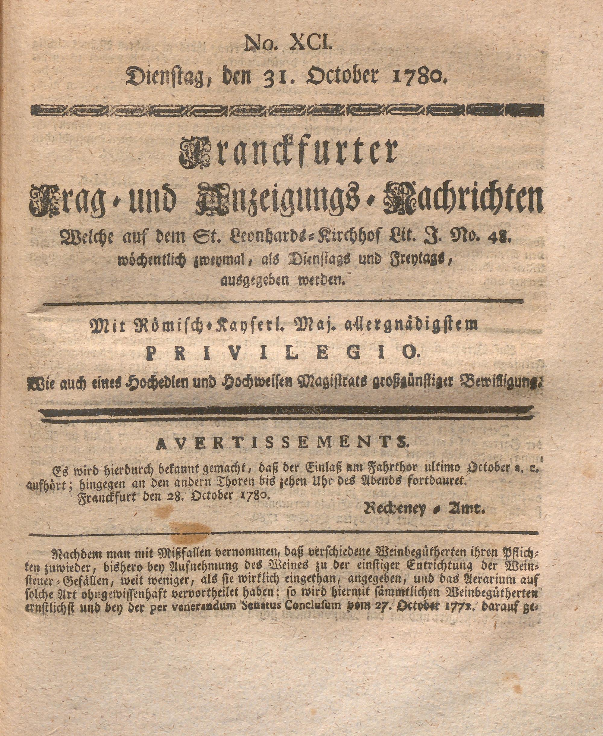 Franckfurter Frag- und Anzeige-Nachricht...