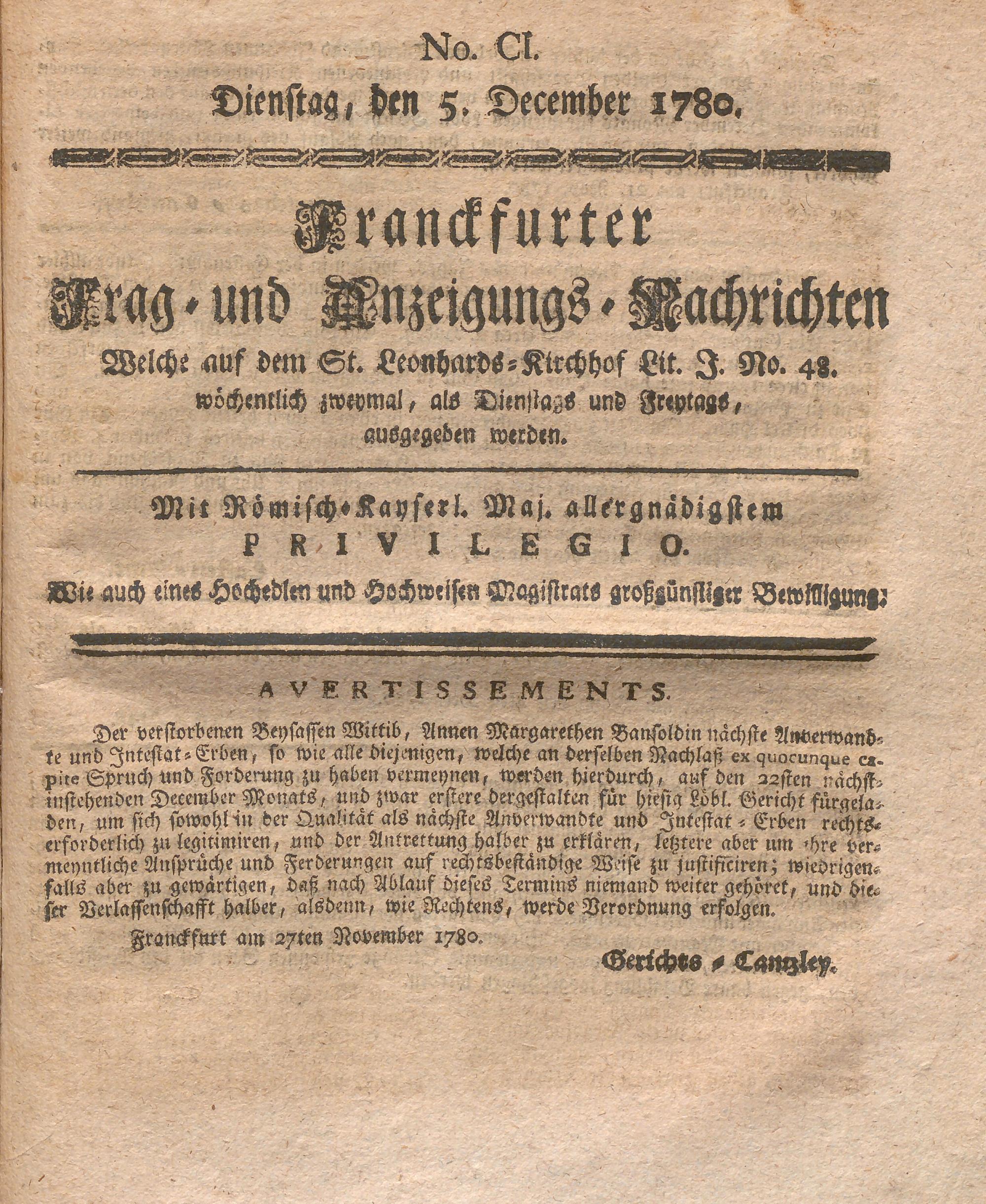 Franckfurter Frag- und Anzeige-Nachricht...