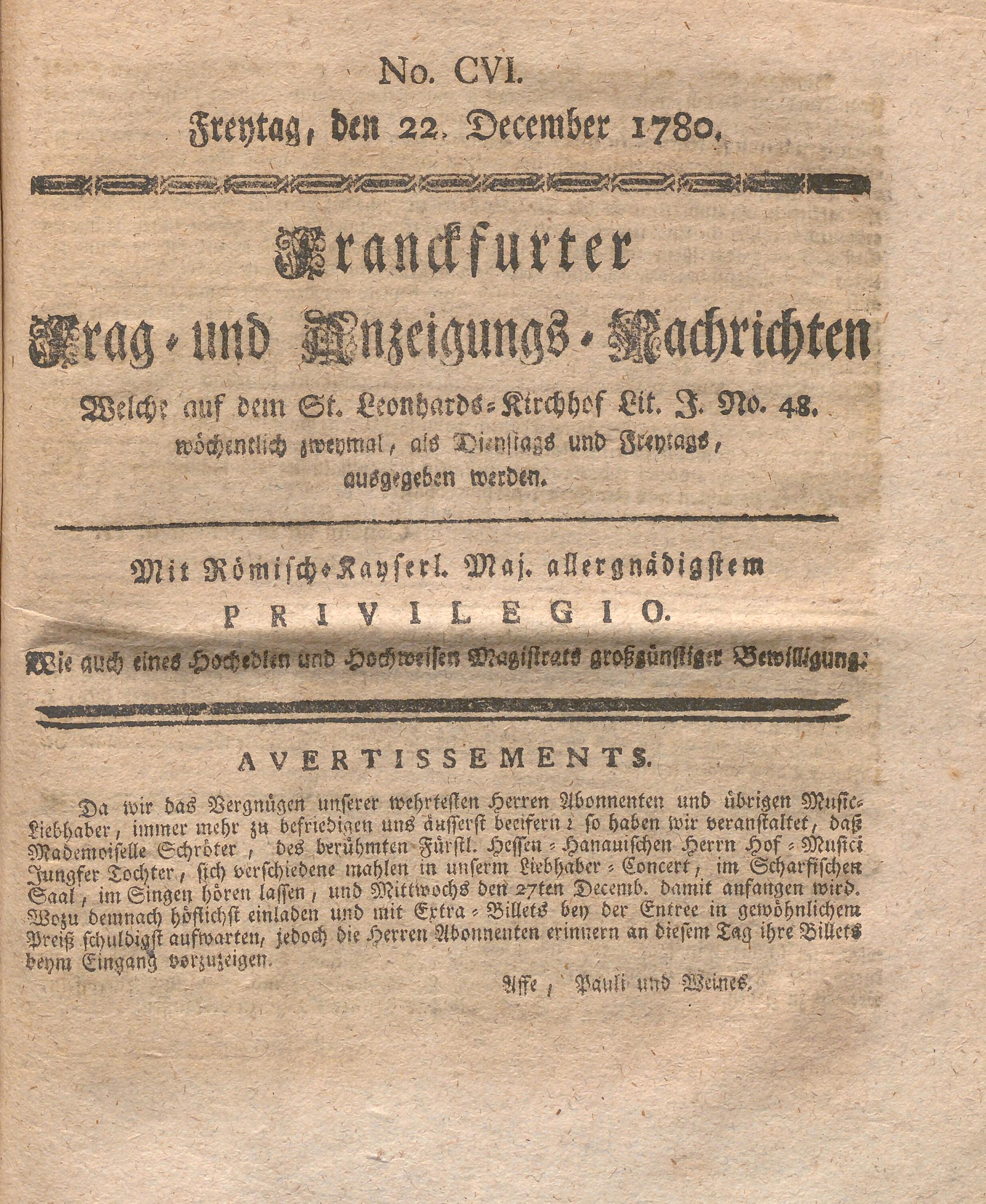 Franckfurter Frag- und Anzeige-Nachricht...