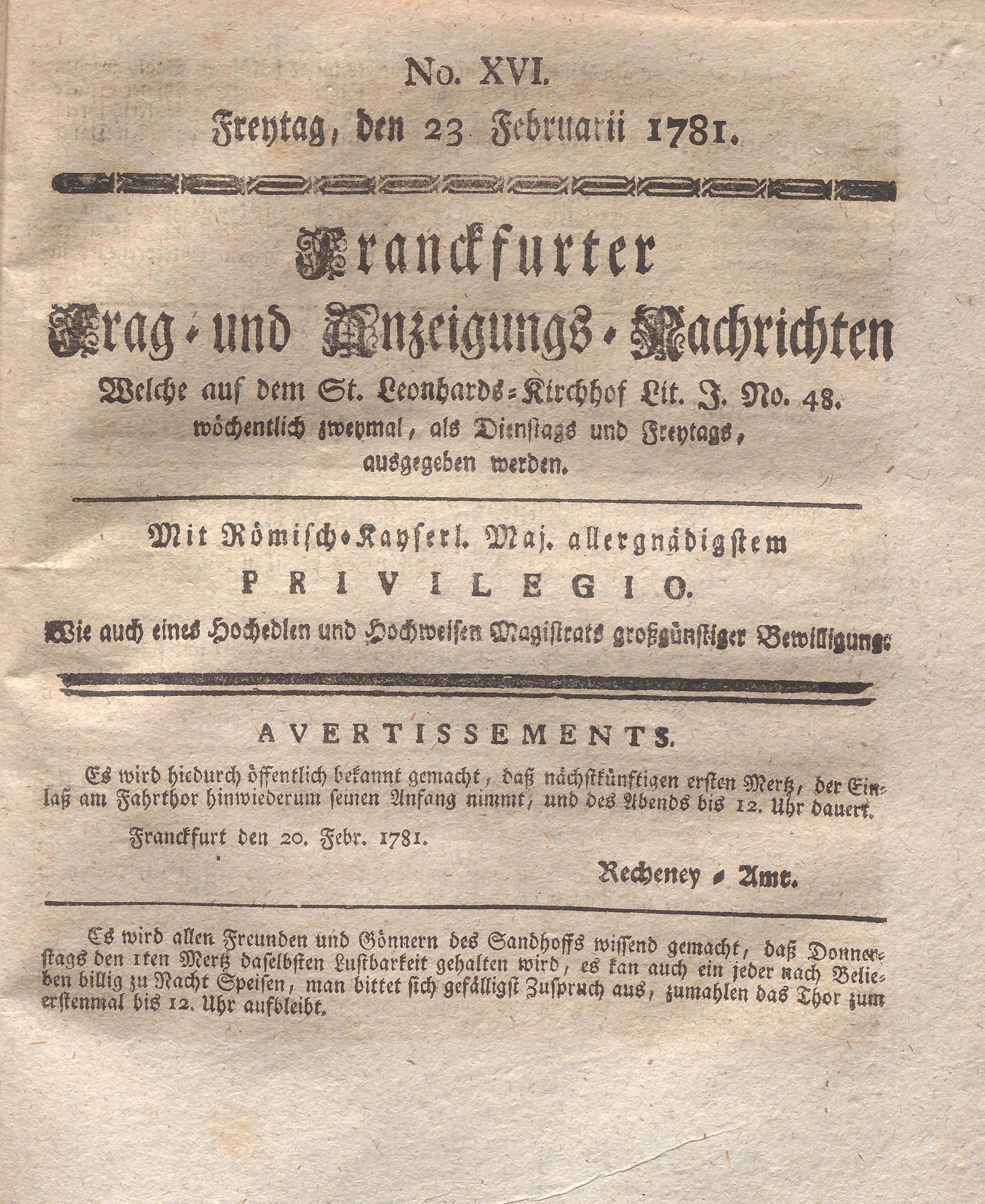 Franckfurter Frag- und Anzeige-Nachricht...