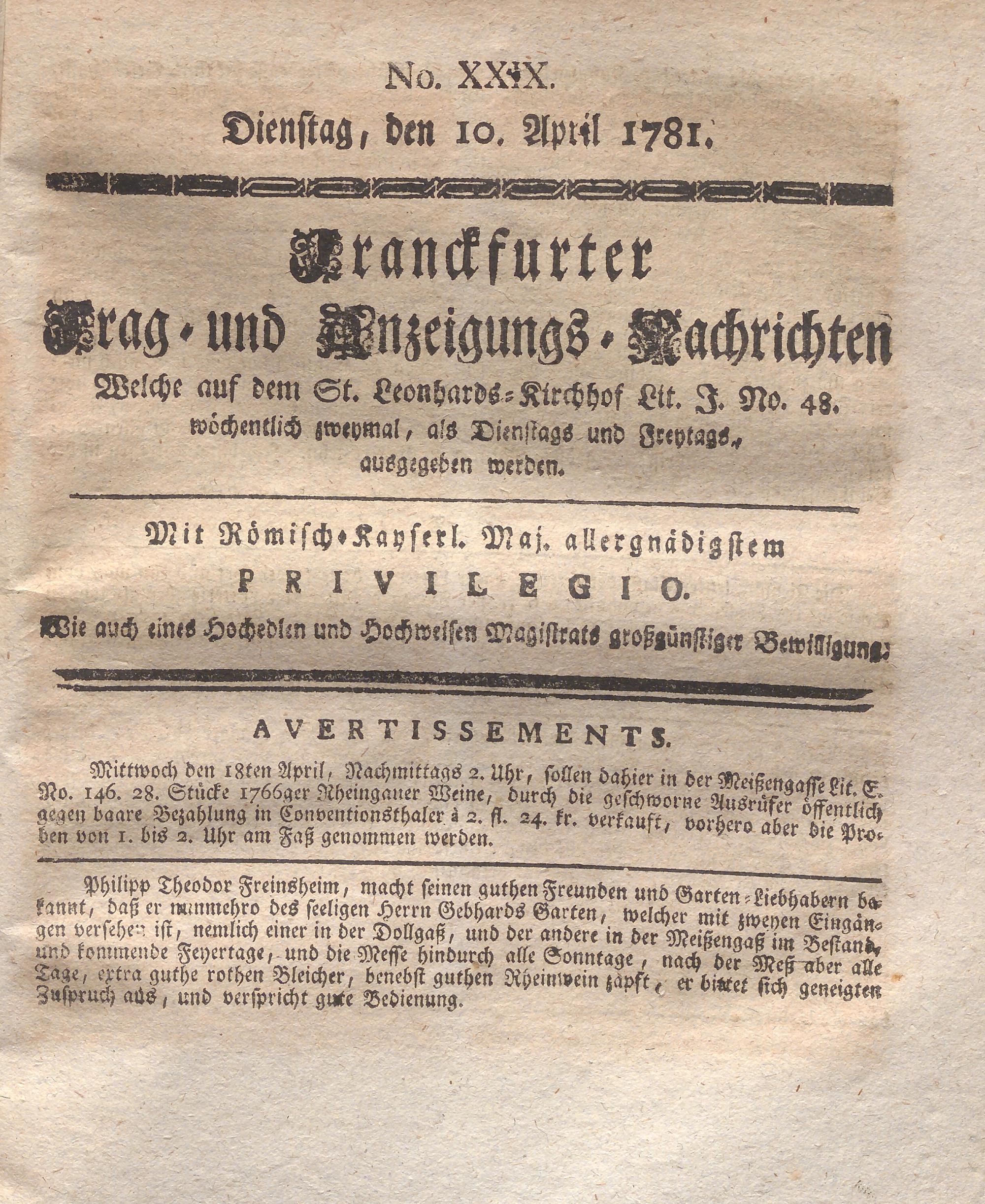 Franckfurter Frag- und Anzeige-Nachricht...