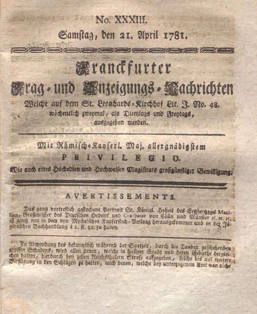 Franckfurter Frag- und Anzeige-Nachricht...