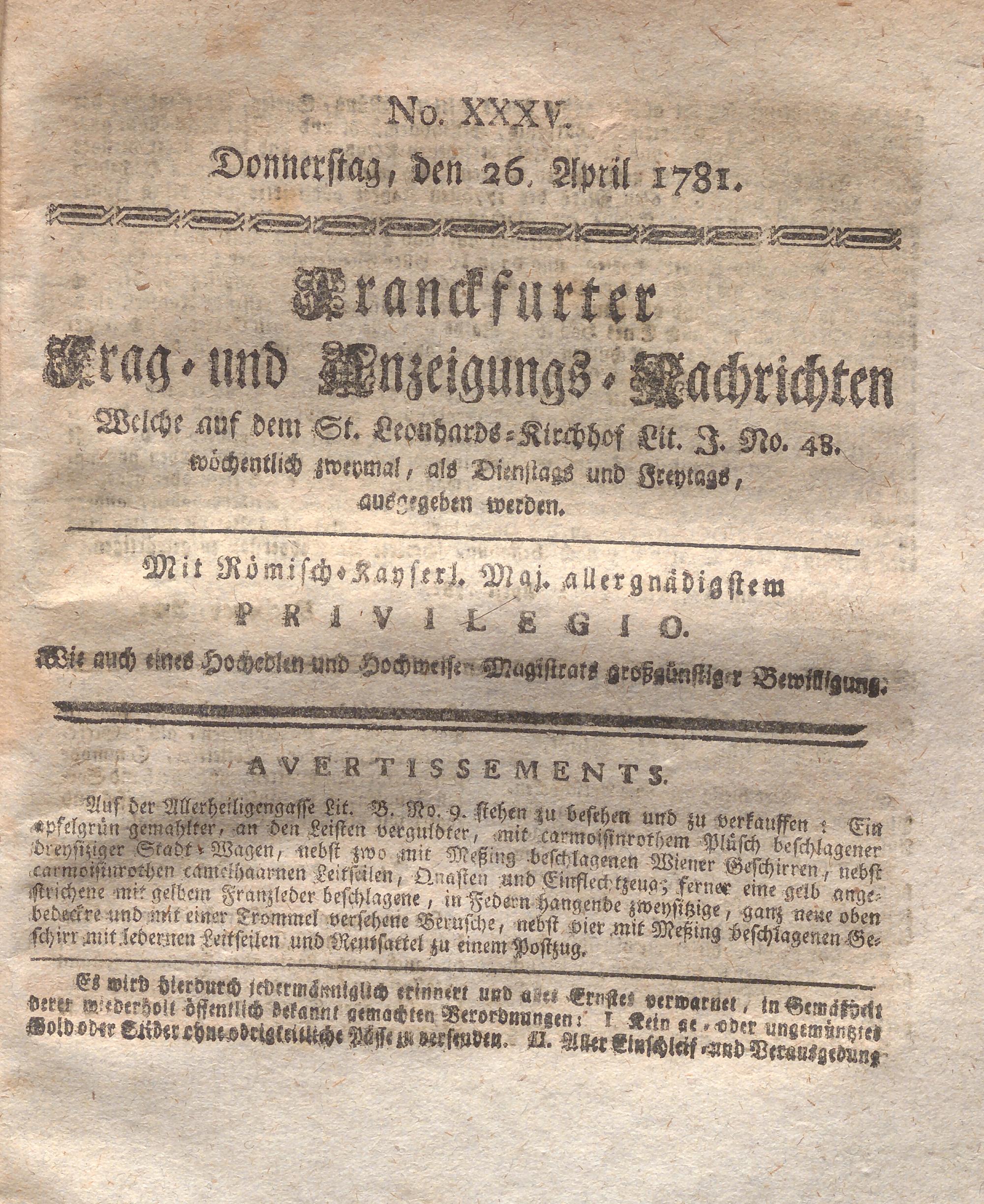Franckfurter Frag- und Anzeige-Nachricht...