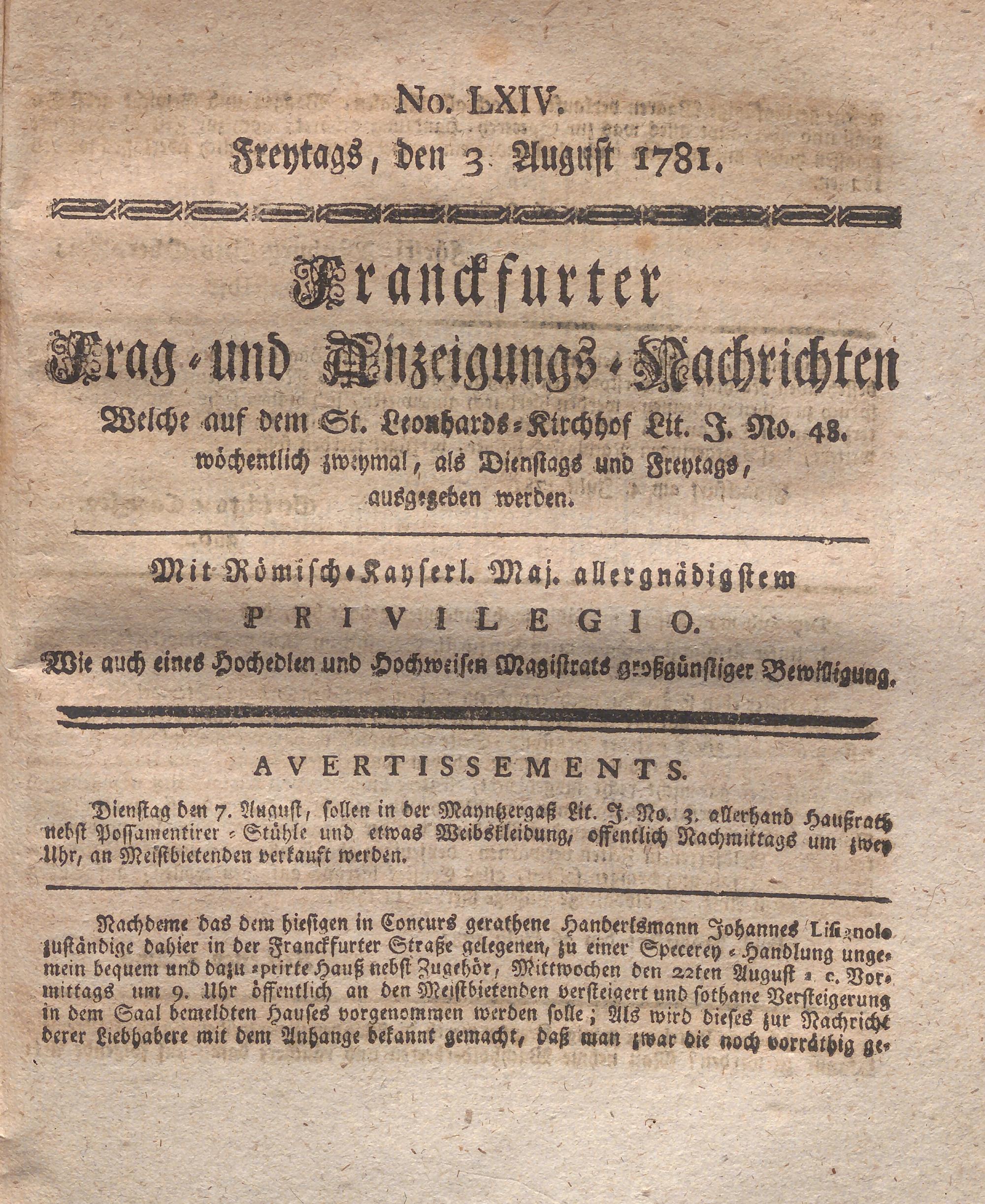 Franckfurter Frag- und Anzeige-Nachricht...