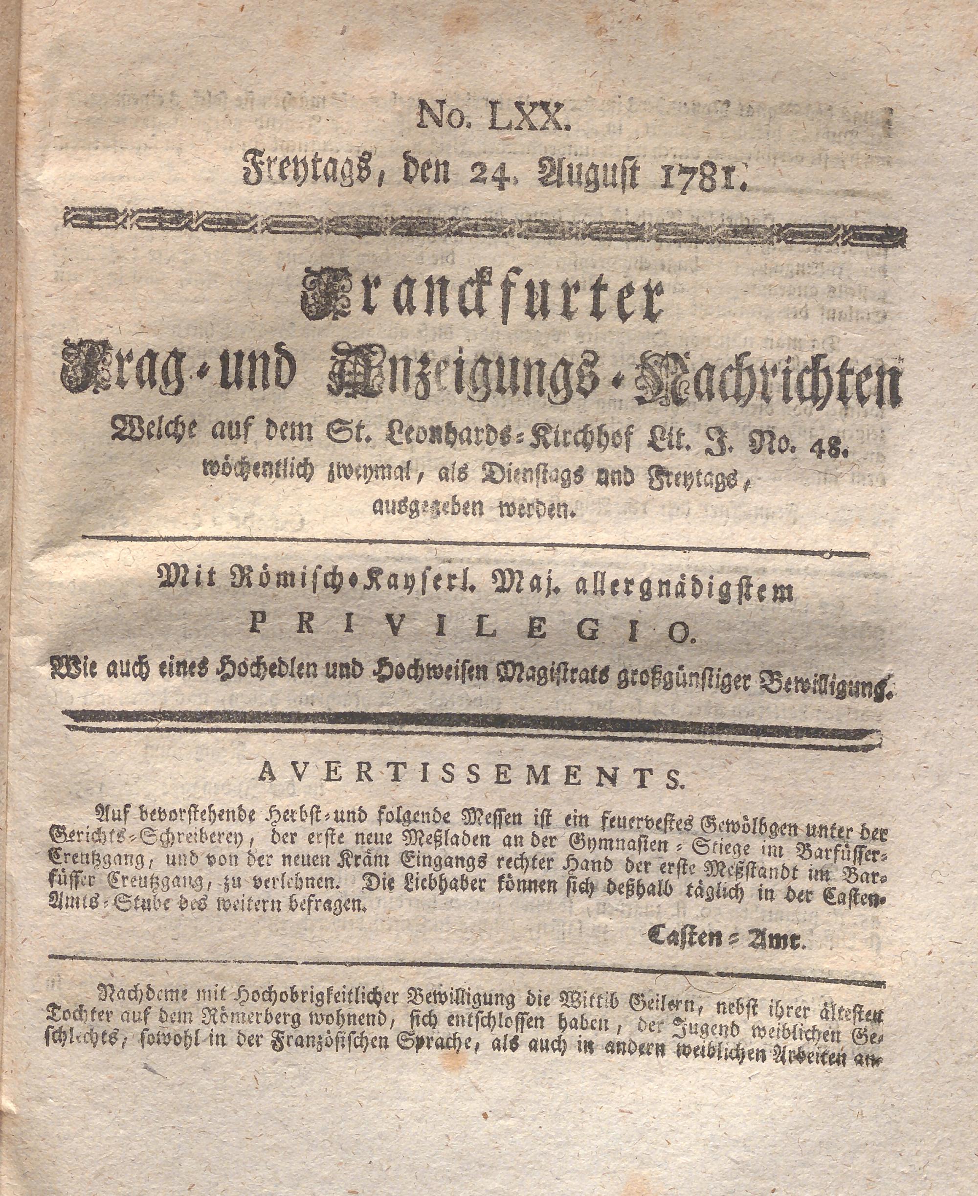Franckfurter Frag- und Anzeige-Nachricht...