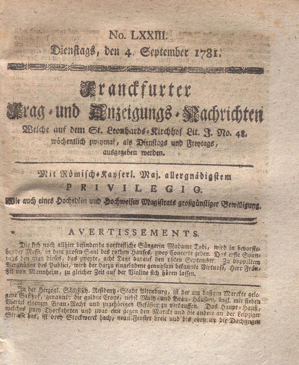 Franckfurter Frag- und Anzeige-Nachricht...