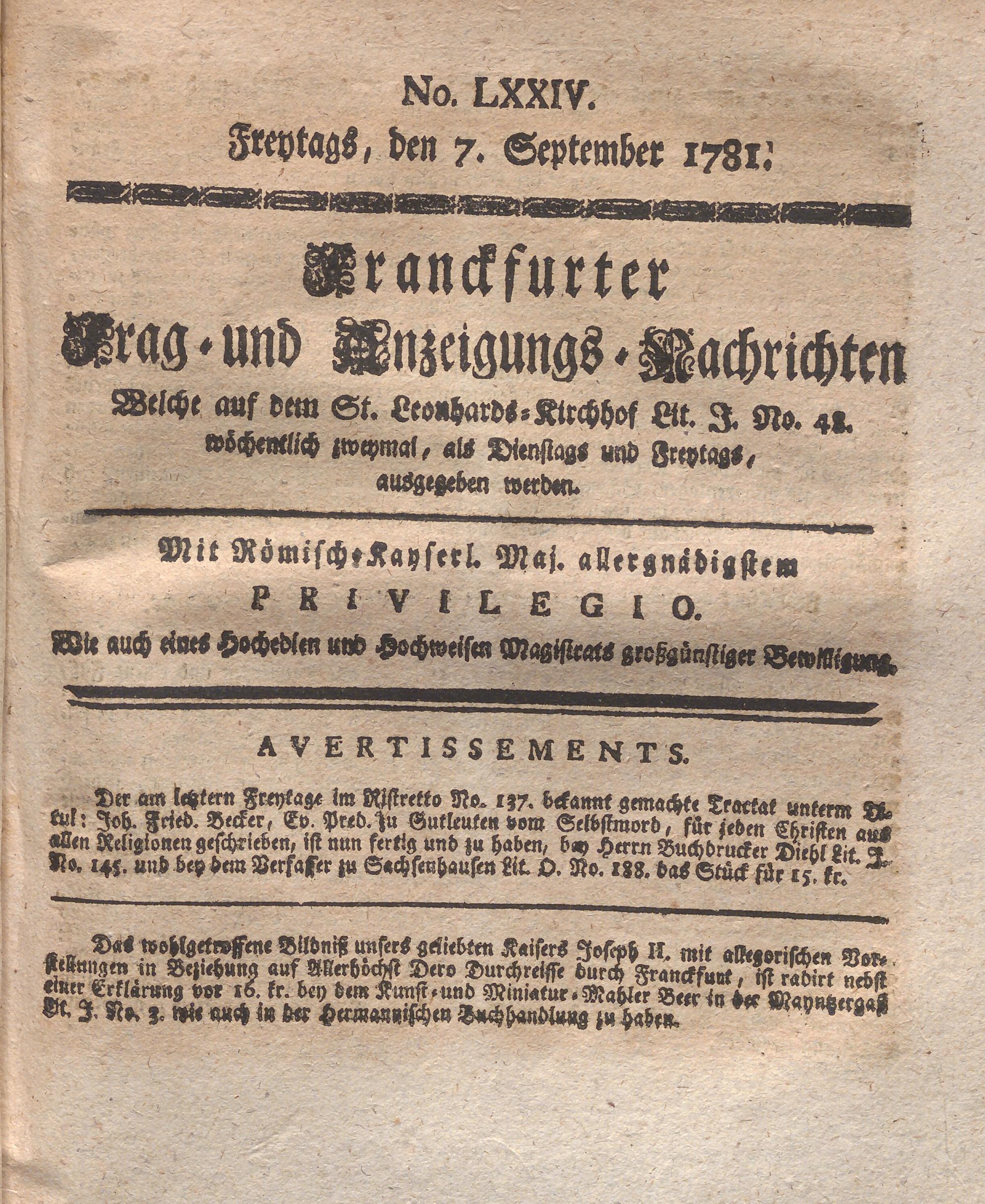 Franckfurter Frag- und Anzeige-Nachricht...