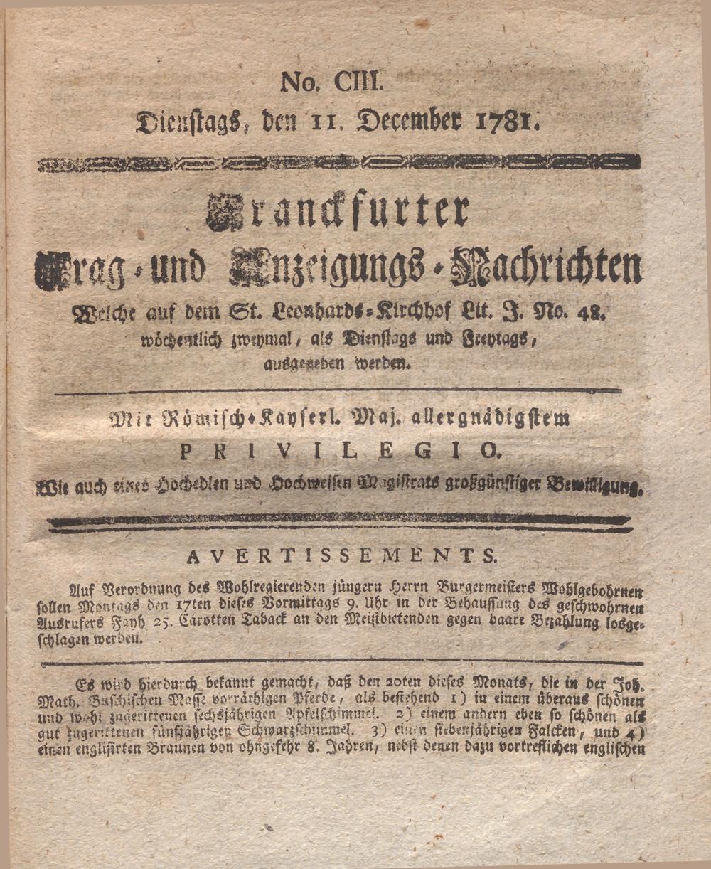 Franckfurter Frag- und Anzeige-Nachricht...