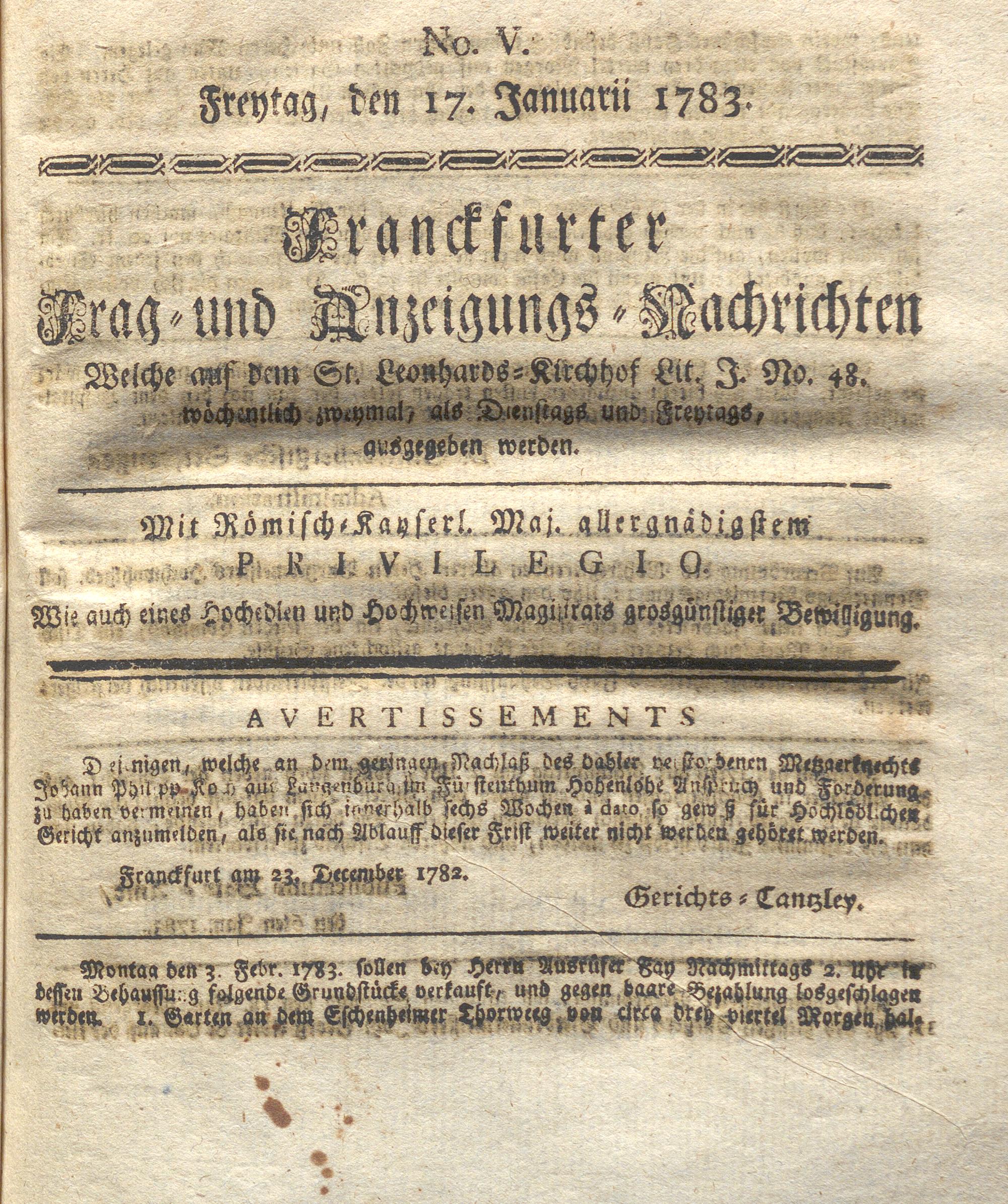 Franckfurter Frag- und Anzeige-Nachricht...