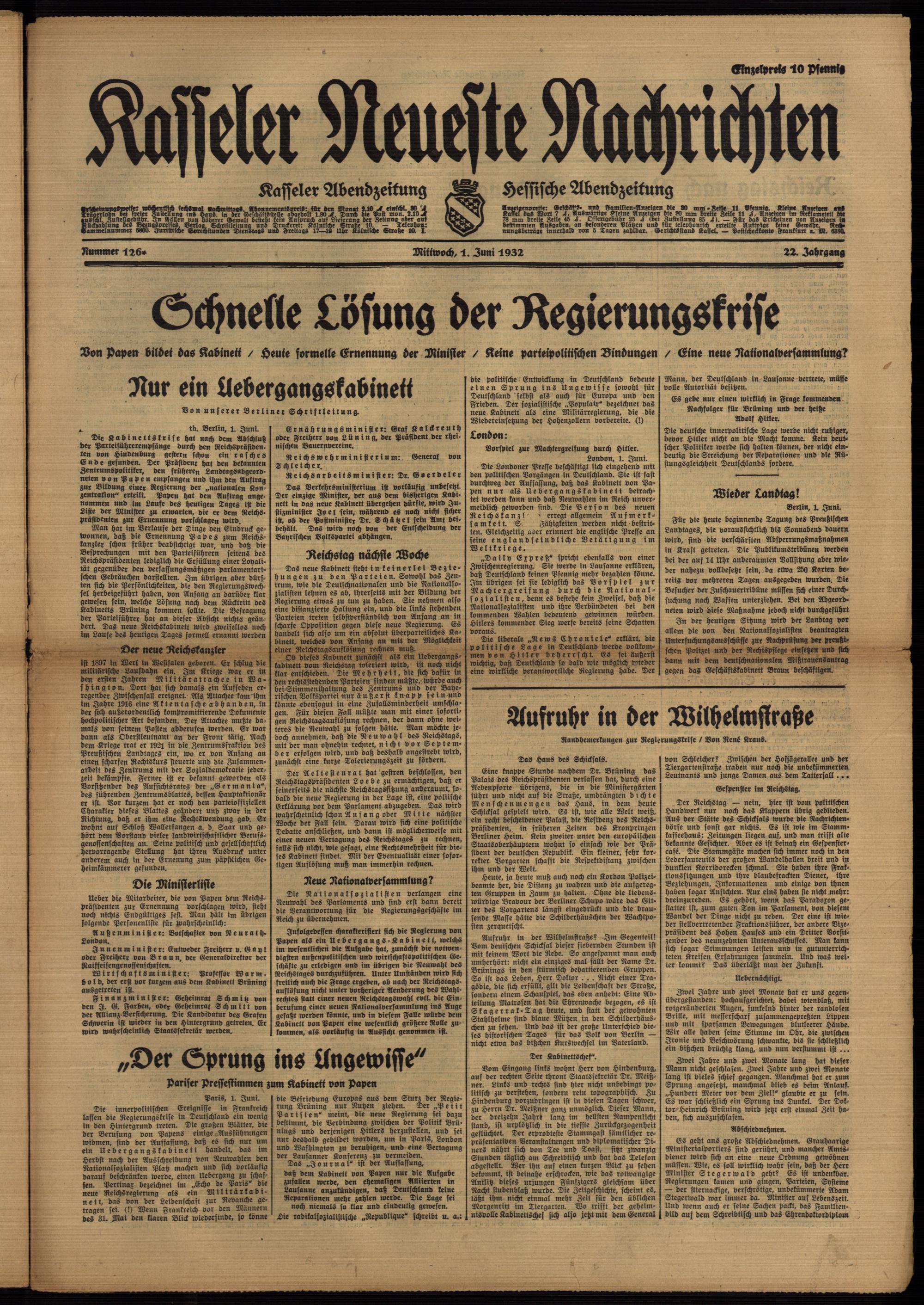 Casseler neueste Nachrichten. 1914-1918