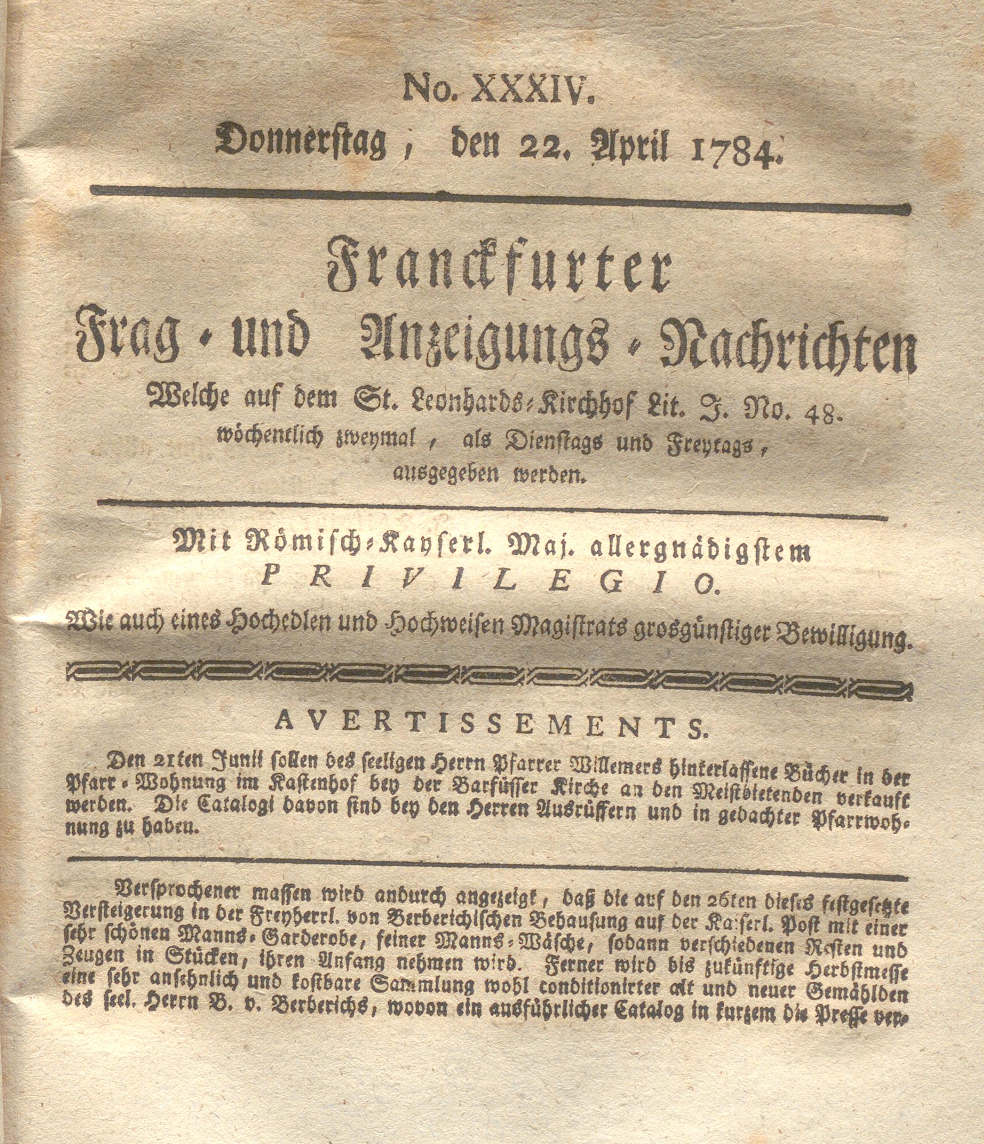 Franckfurter Frag- und Anzeige-Nachricht...