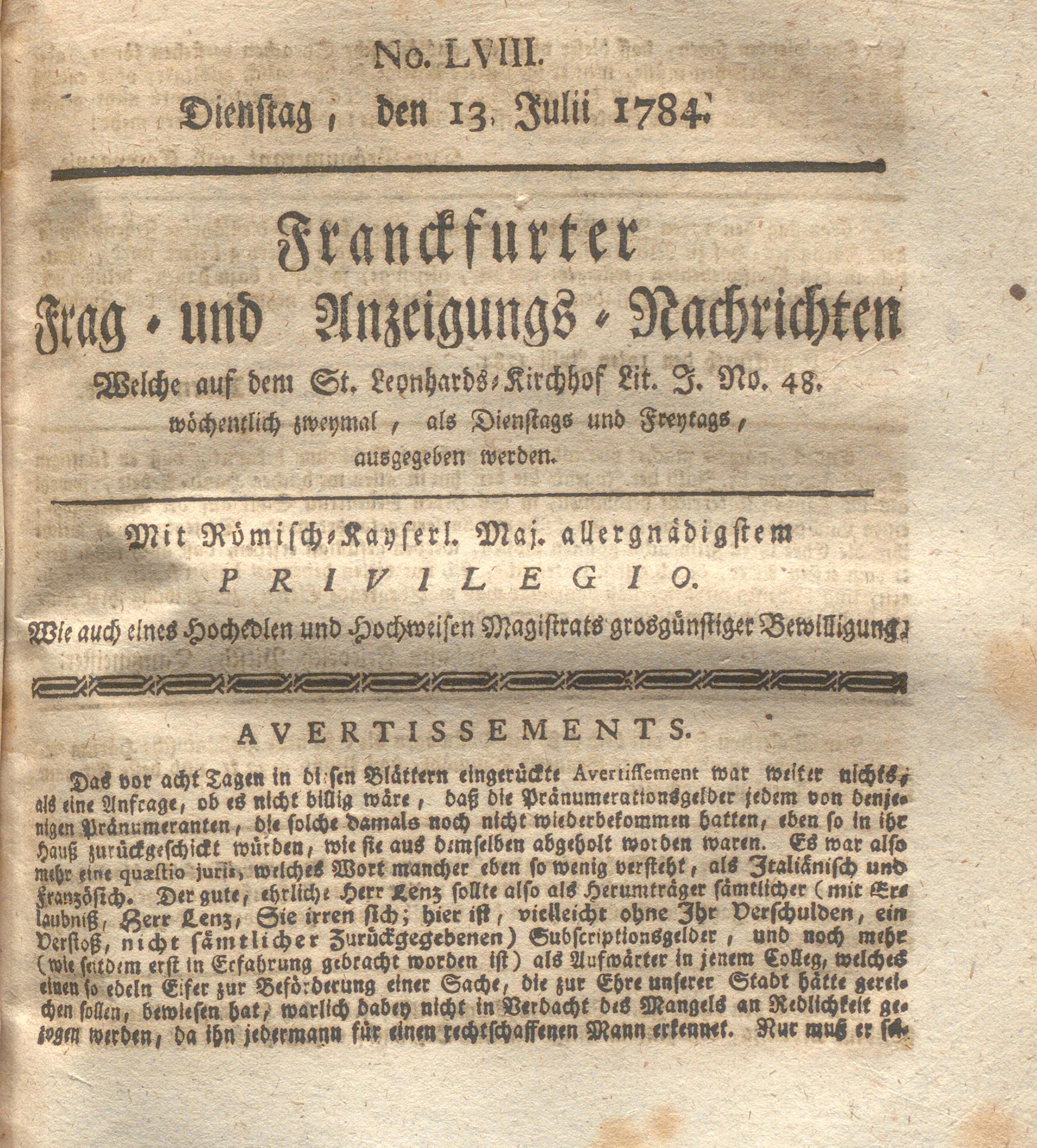 Franckfurter Frag- und Anzeige-Nachricht...