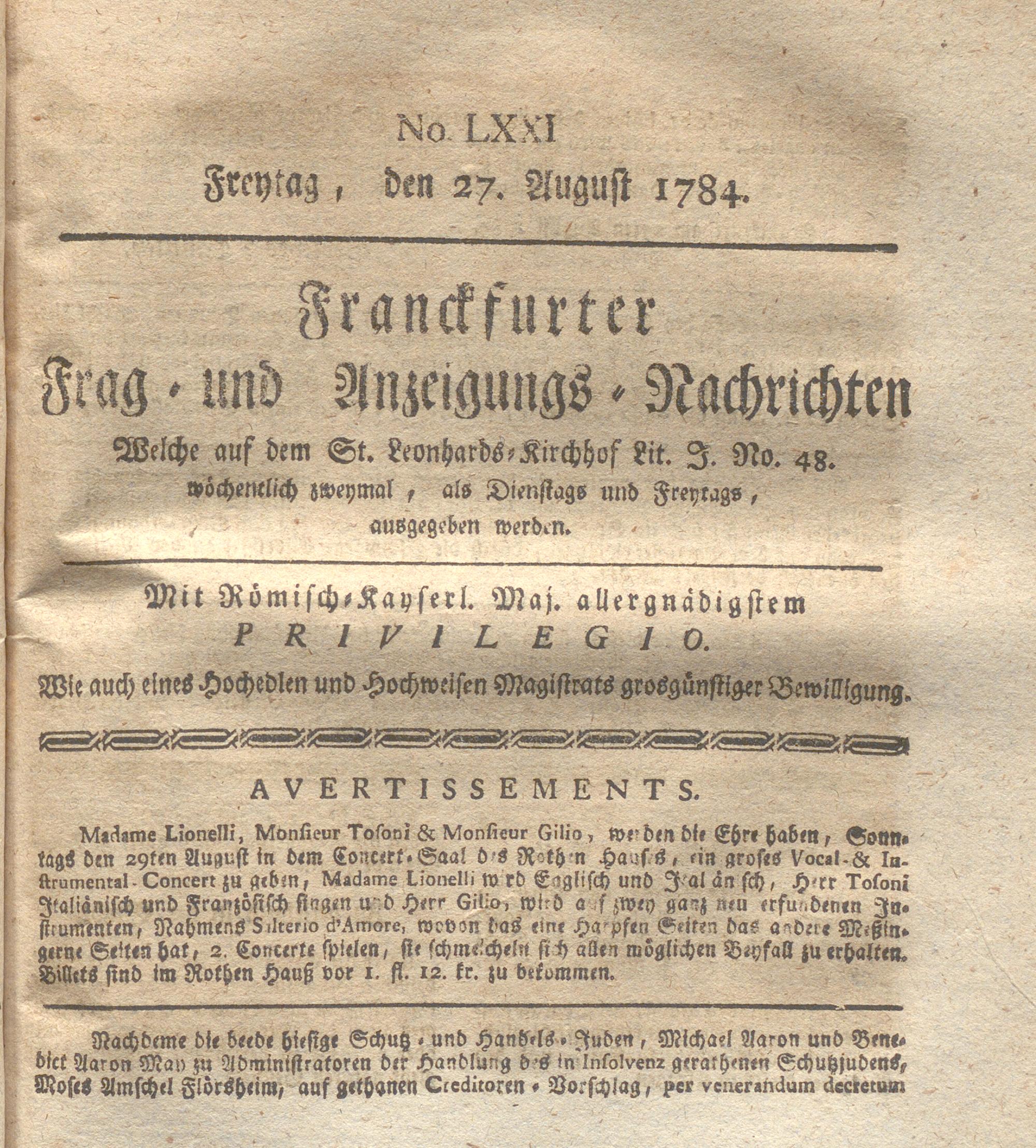 Franckfurter Frag- und Anzeige-Nachricht...