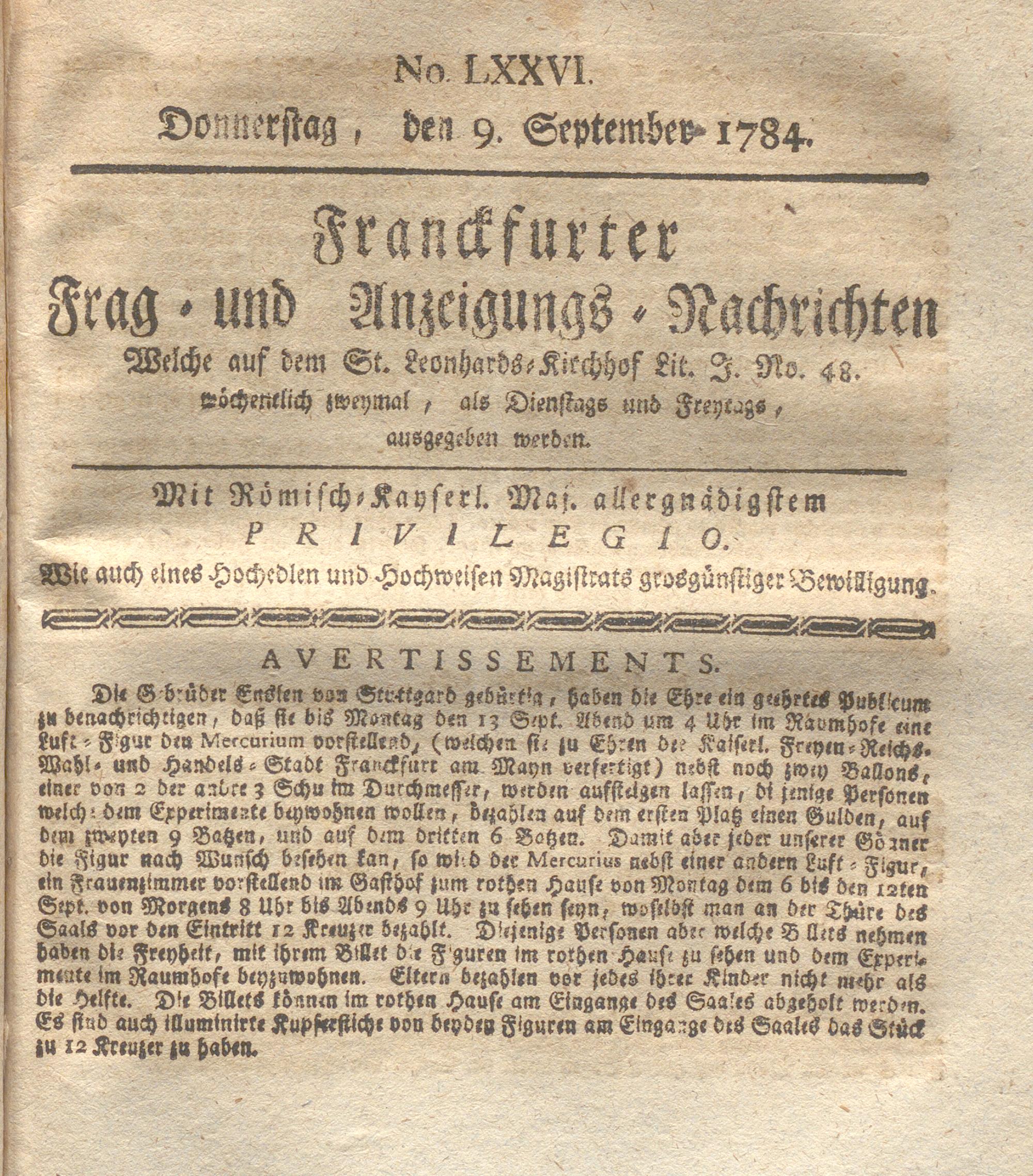 Franckfurter Frag- und Anzeige-Nachricht...