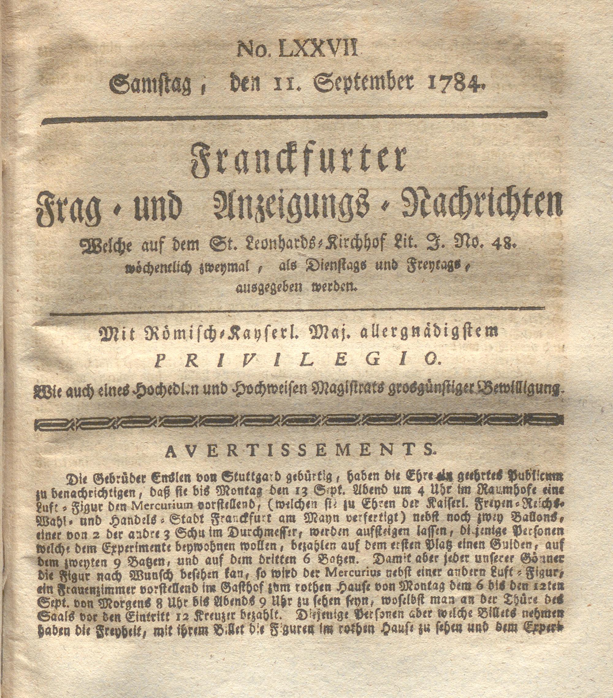 Franckfurter Frag- und Anzeige-Nachricht...