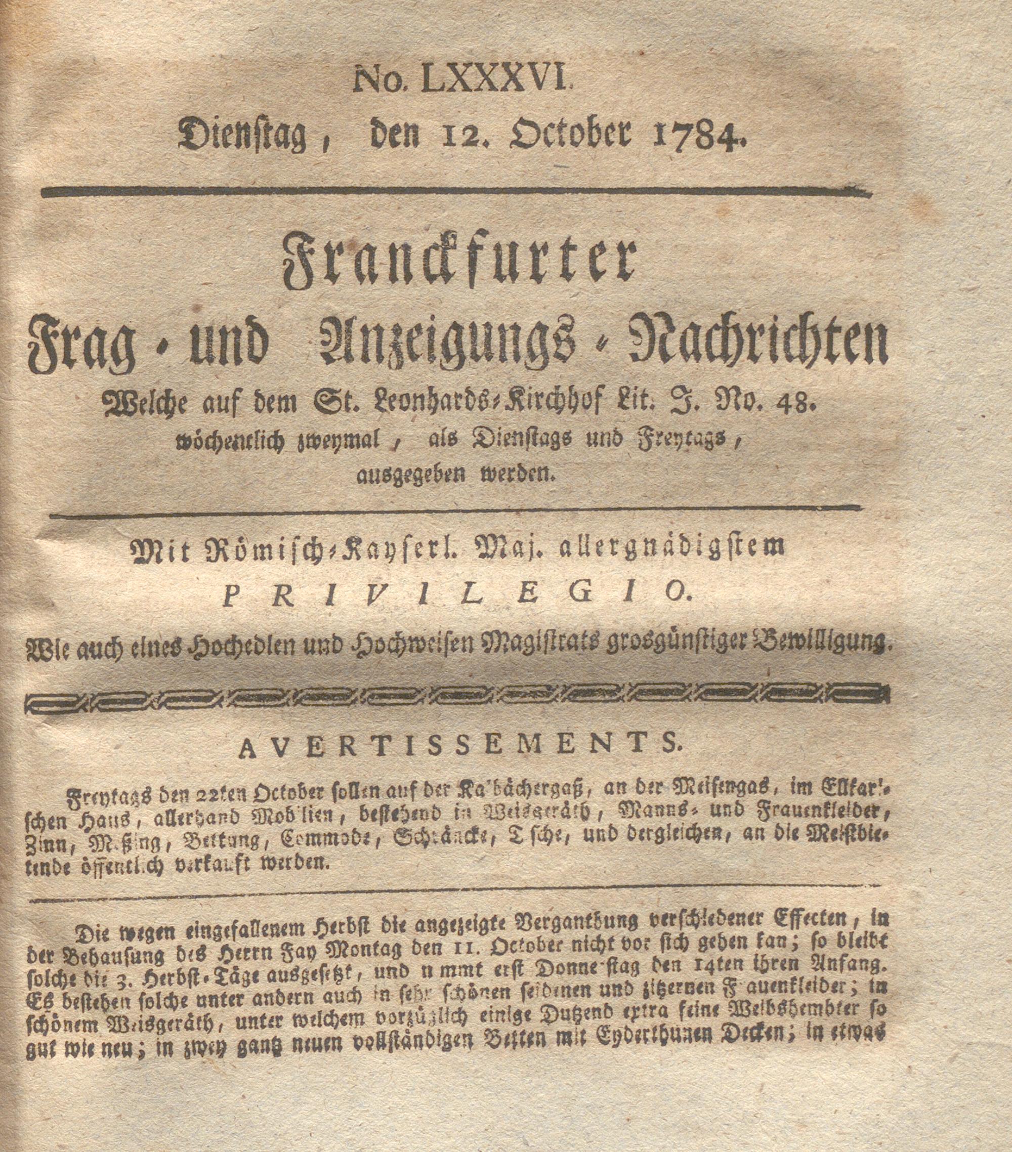 Franckfurter Frag- und Anzeige-Nachricht...
