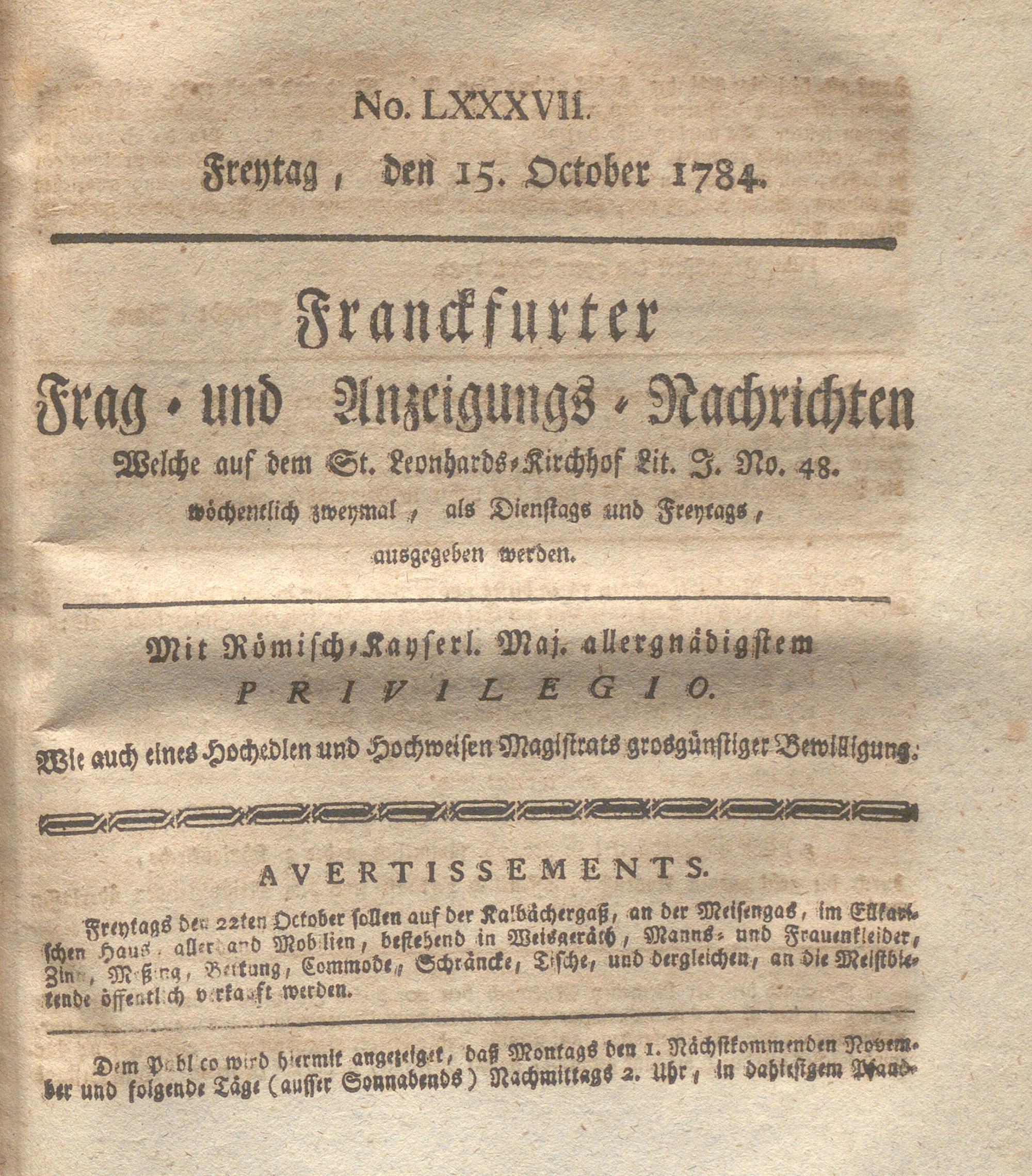 Franckfurter Frag- und Anzeige-Nachricht...