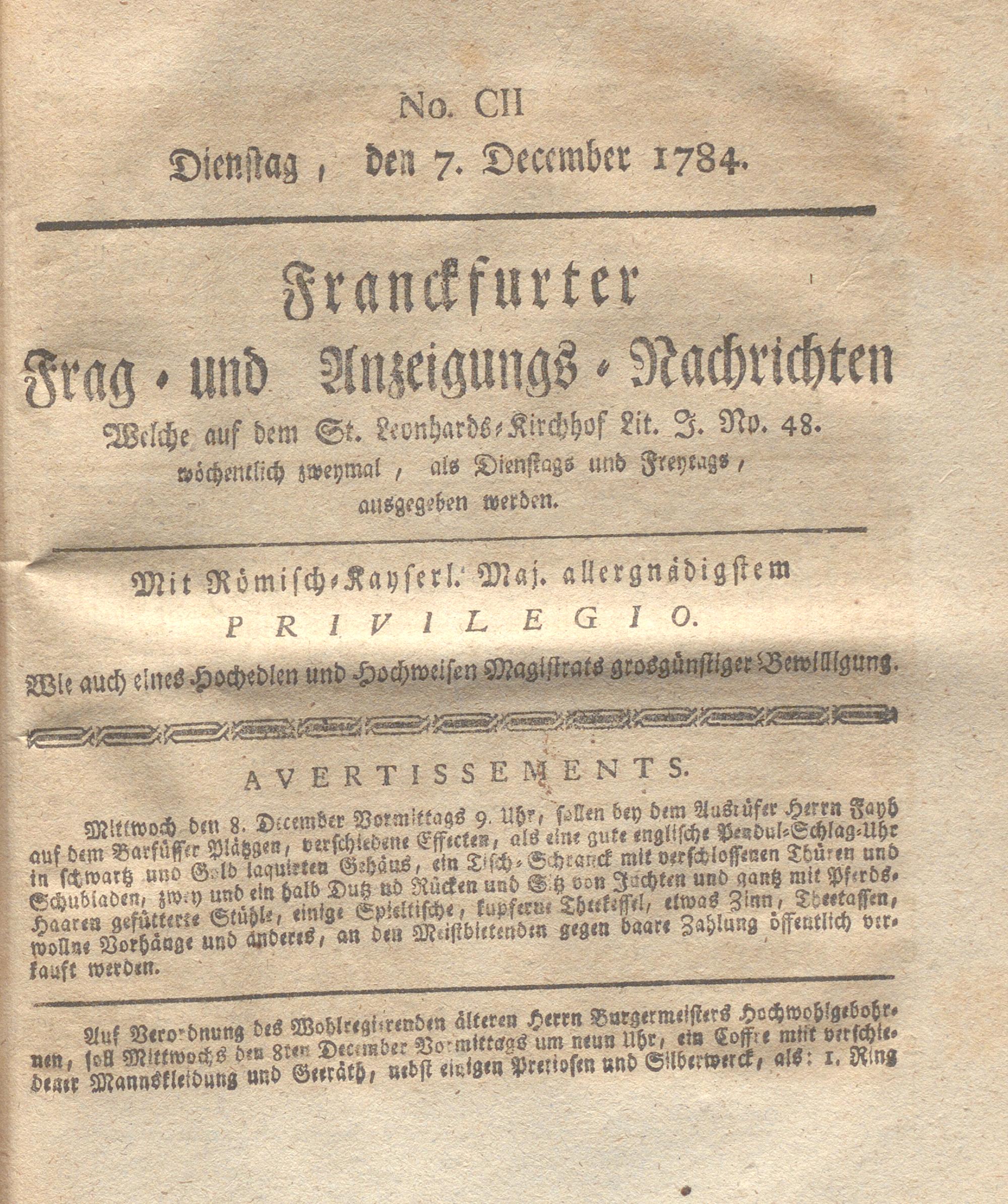 Franckfurter Frag- und Anzeige-Nachricht...