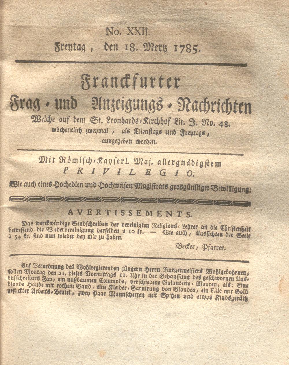 Franckfurter Frag- und Anzeige-Nachricht...