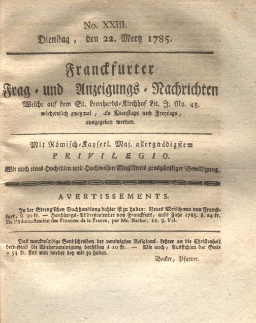 Franckfurter Frag- und Anzeige-Nachricht...