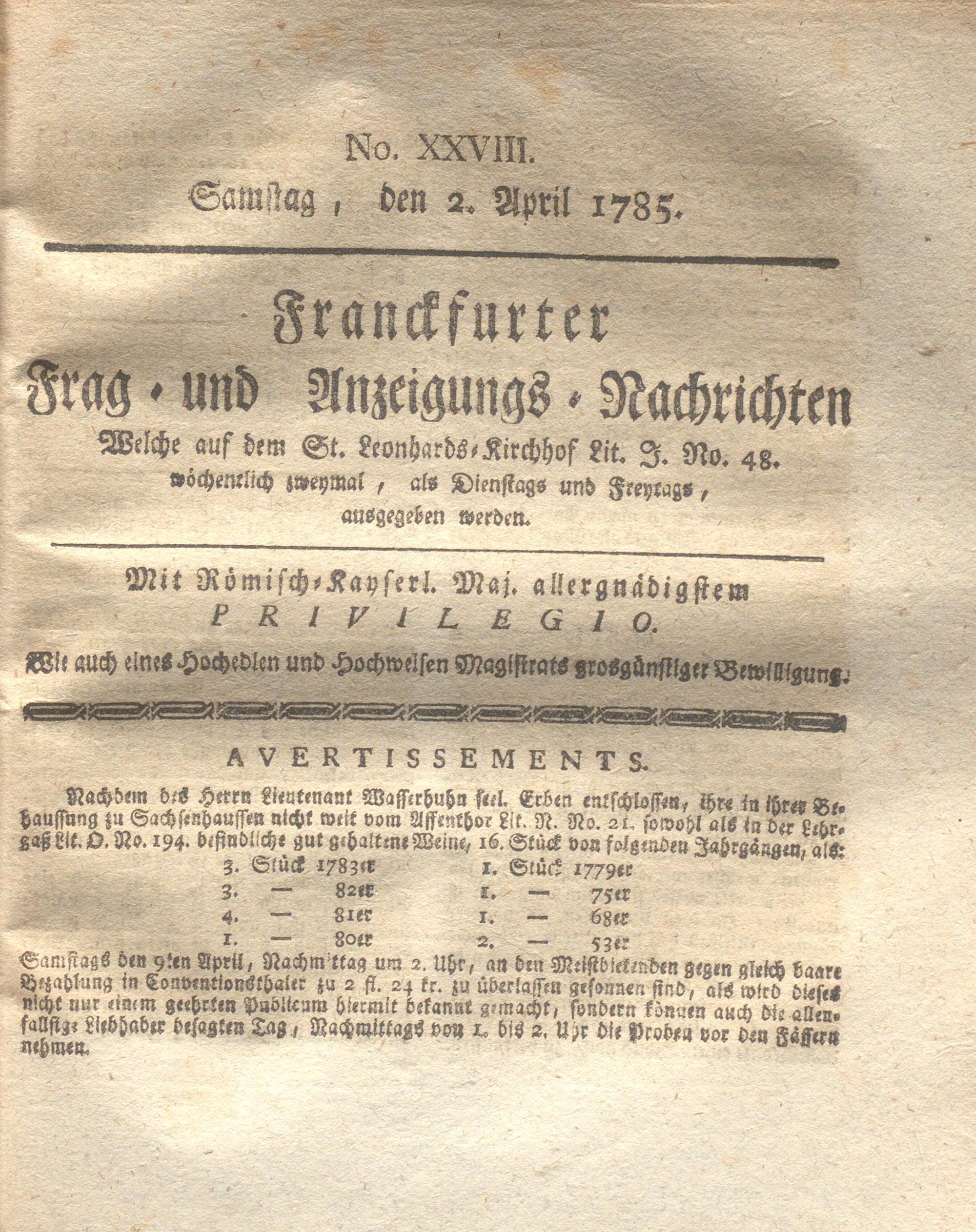 Franckfurter Frag- und Anzeige-Nachricht...