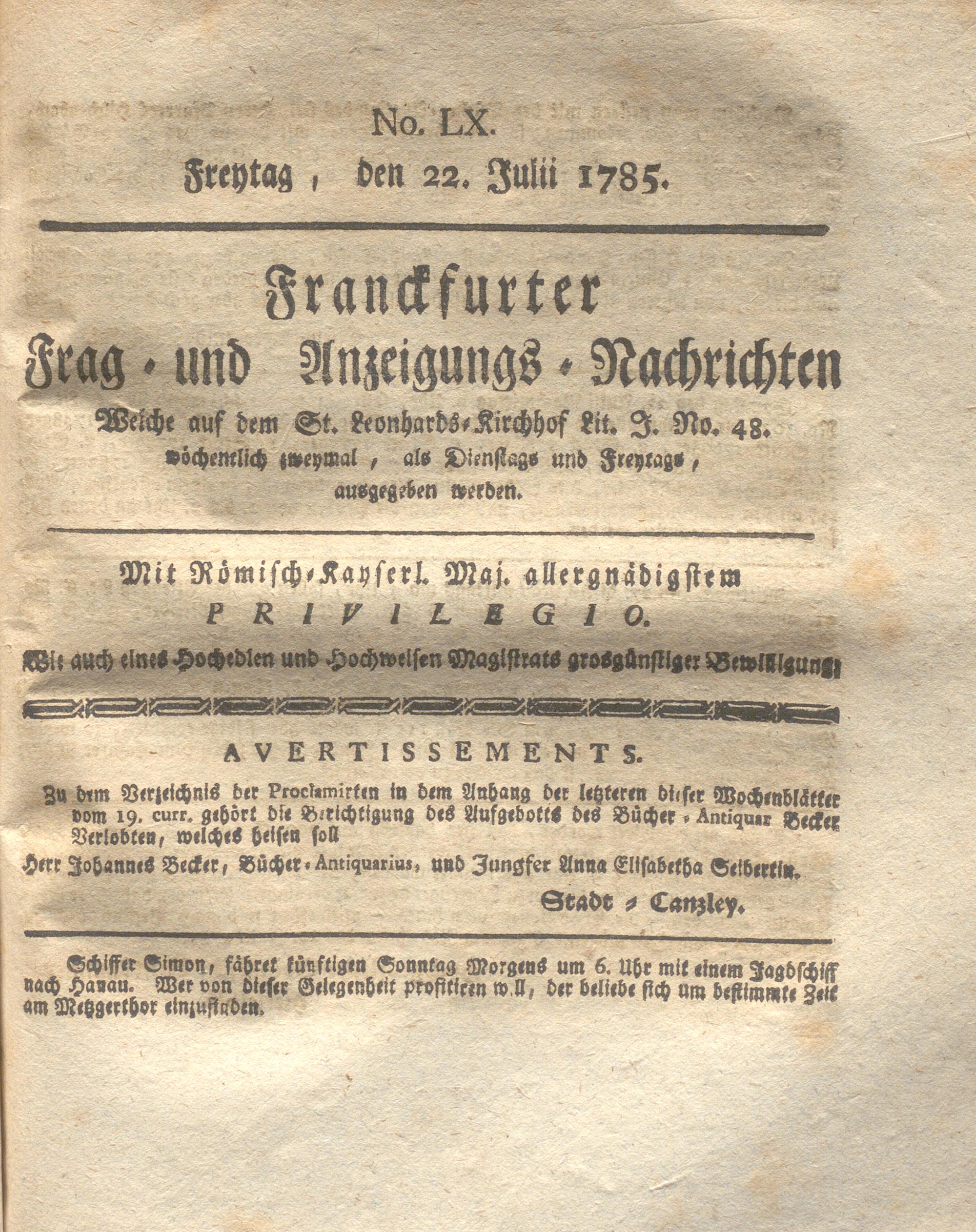 Franckfurter Frag- und Anzeige-Nachricht...