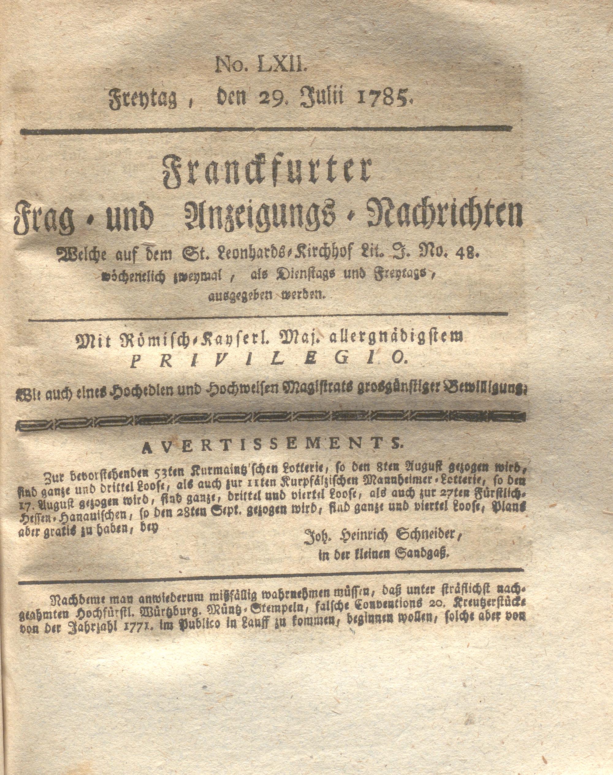 Franckfurter Frag- und Anzeige-Nachricht...