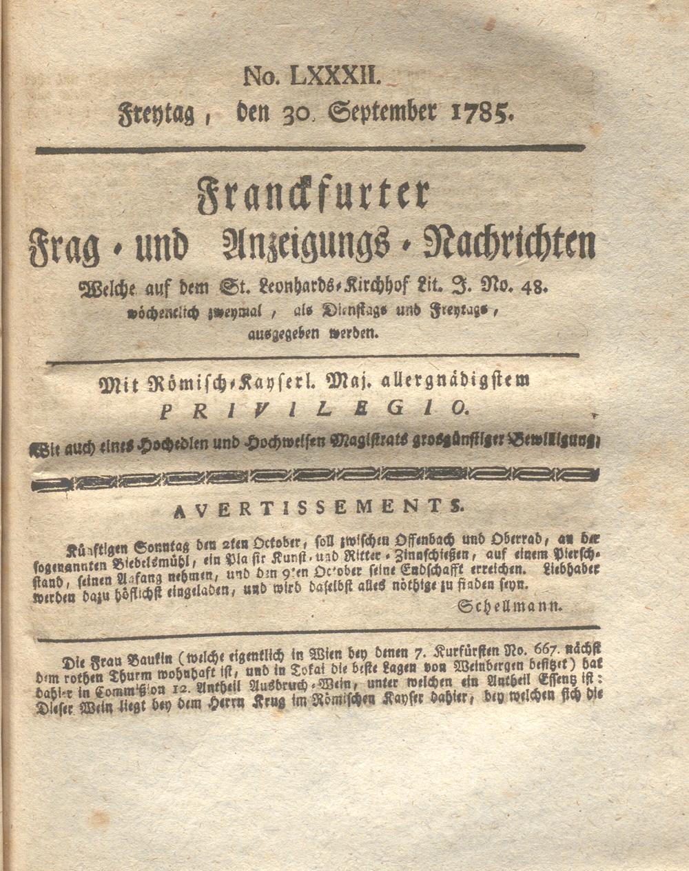 Franckfurter Frag- und Anzeige-Nachricht...