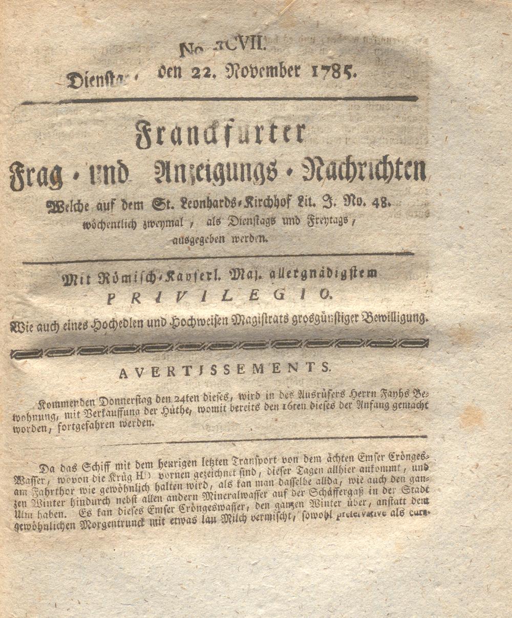 Franckfurter Frag- und Anzeige-Nachricht...