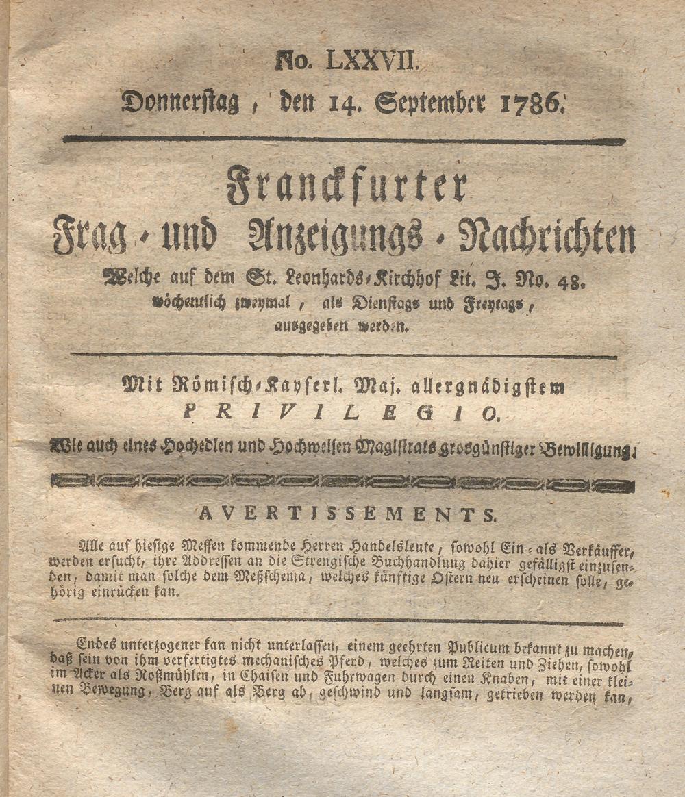 Franckfurter Frag- und Anzeige-Nachricht...