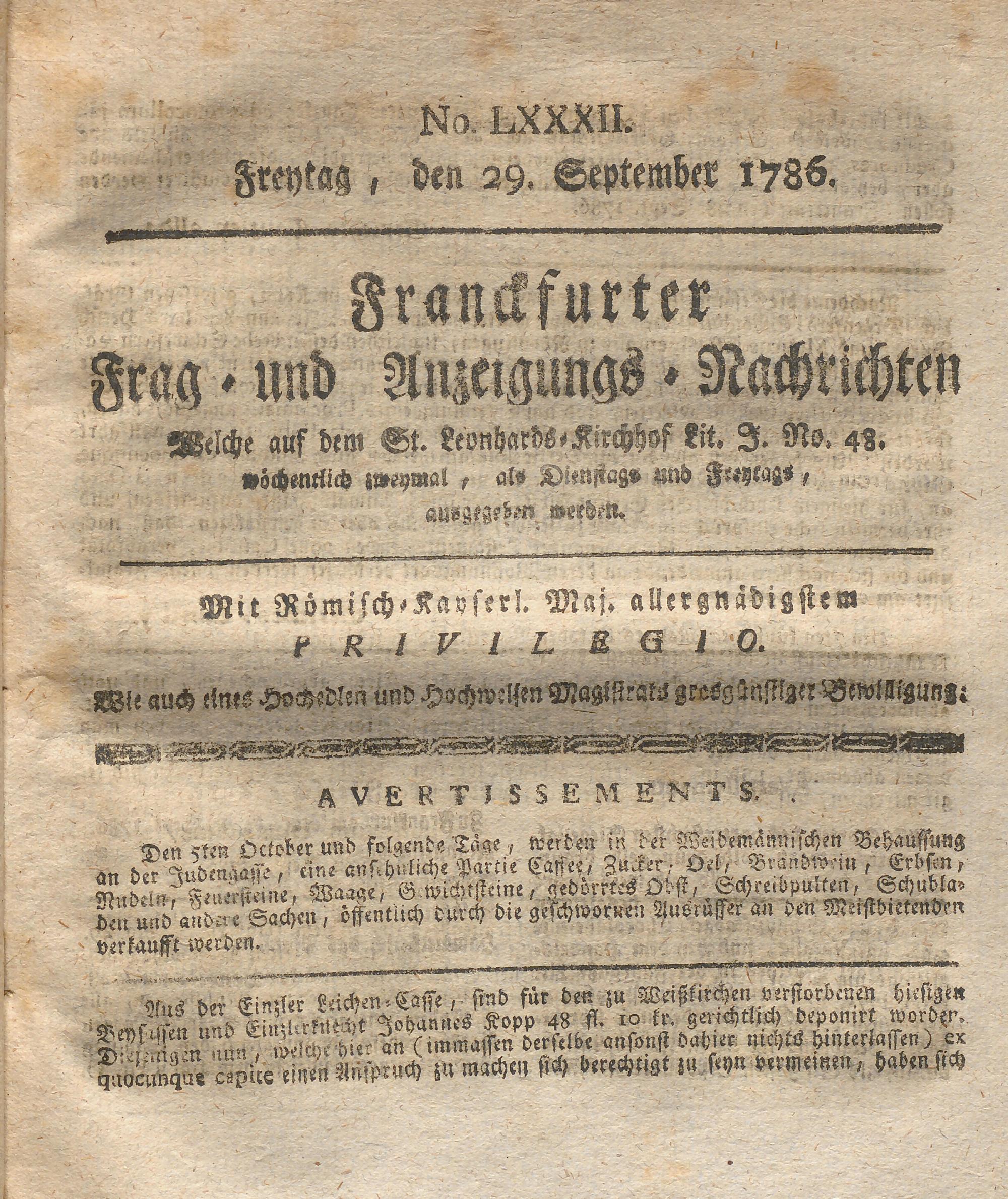Franckfurter Frag- und Anzeige-Nachricht...