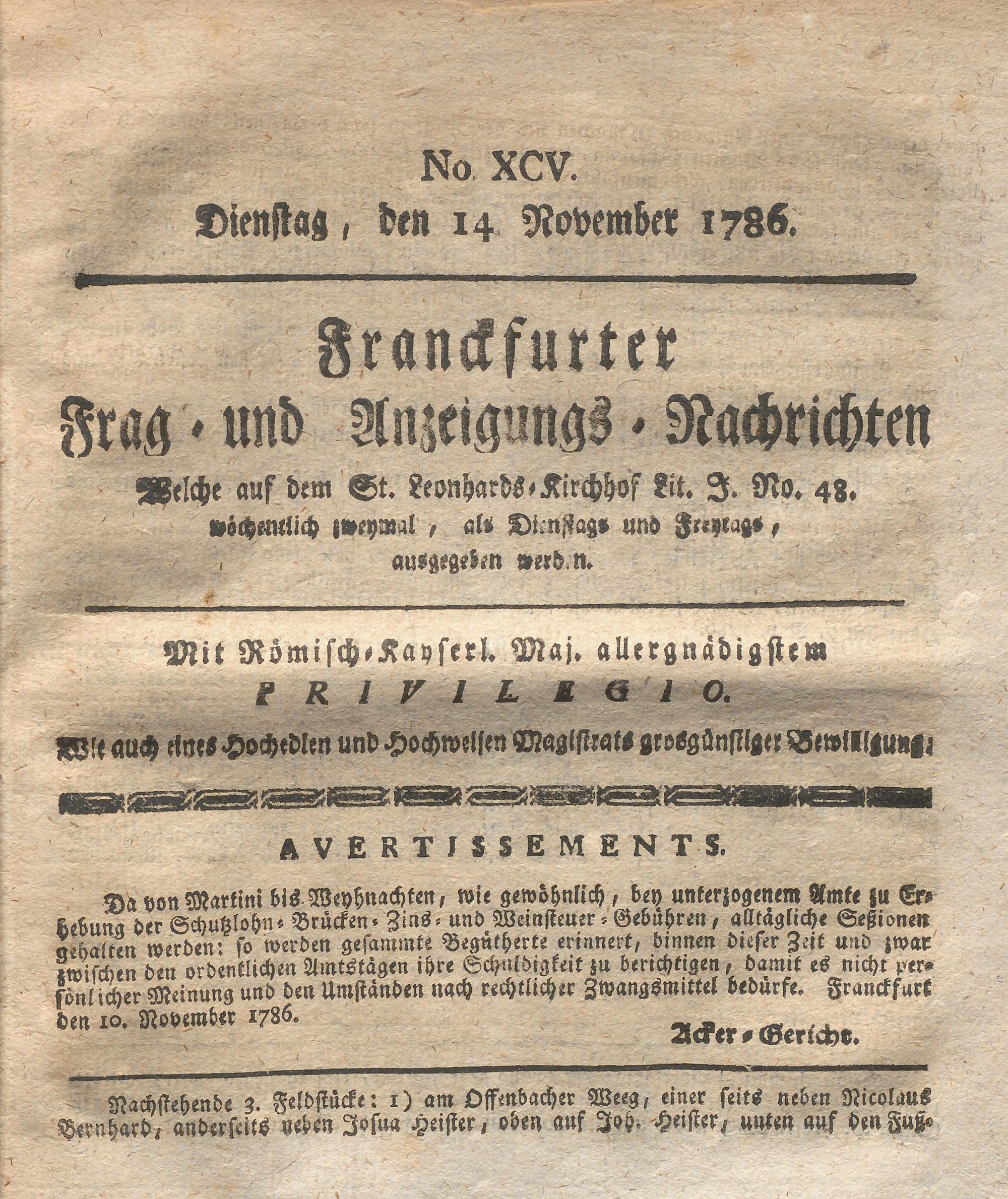 Franckfurter Frag- und Anzeige-Nachricht...