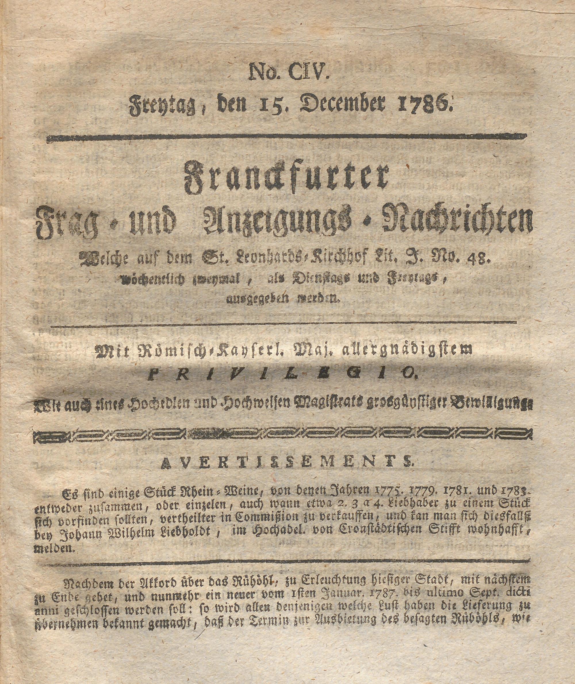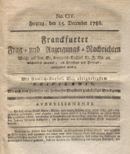 Franckfurter Frag- und Anzeige-Nachricht...