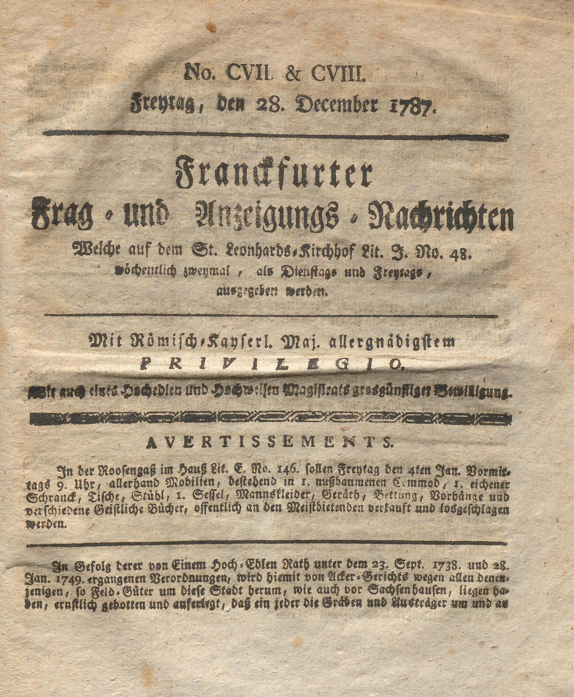Franckfurter Frag- und Anzeige-Nachricht...