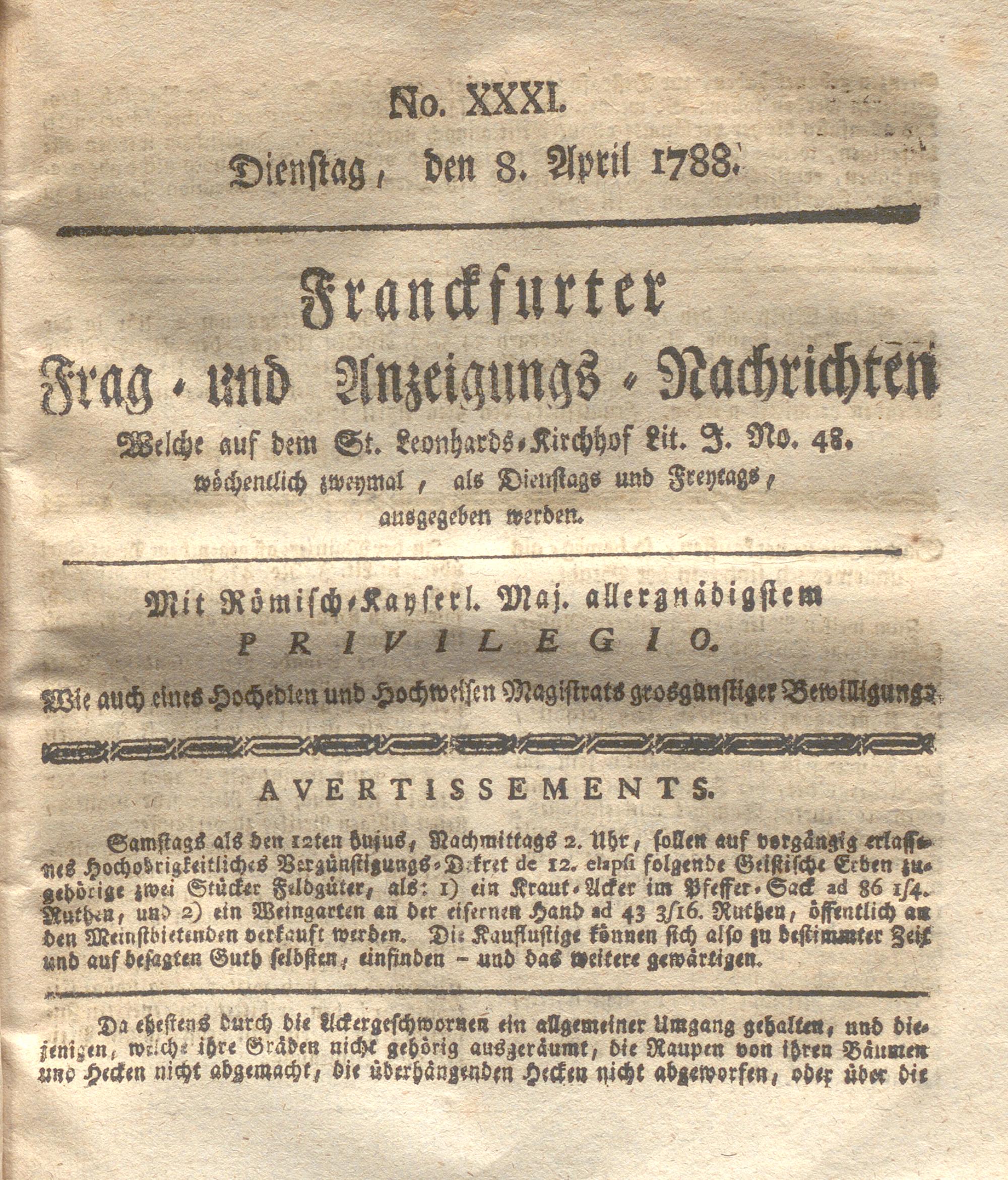 Franckfurter Frag- und Anzeige-Nachricht...