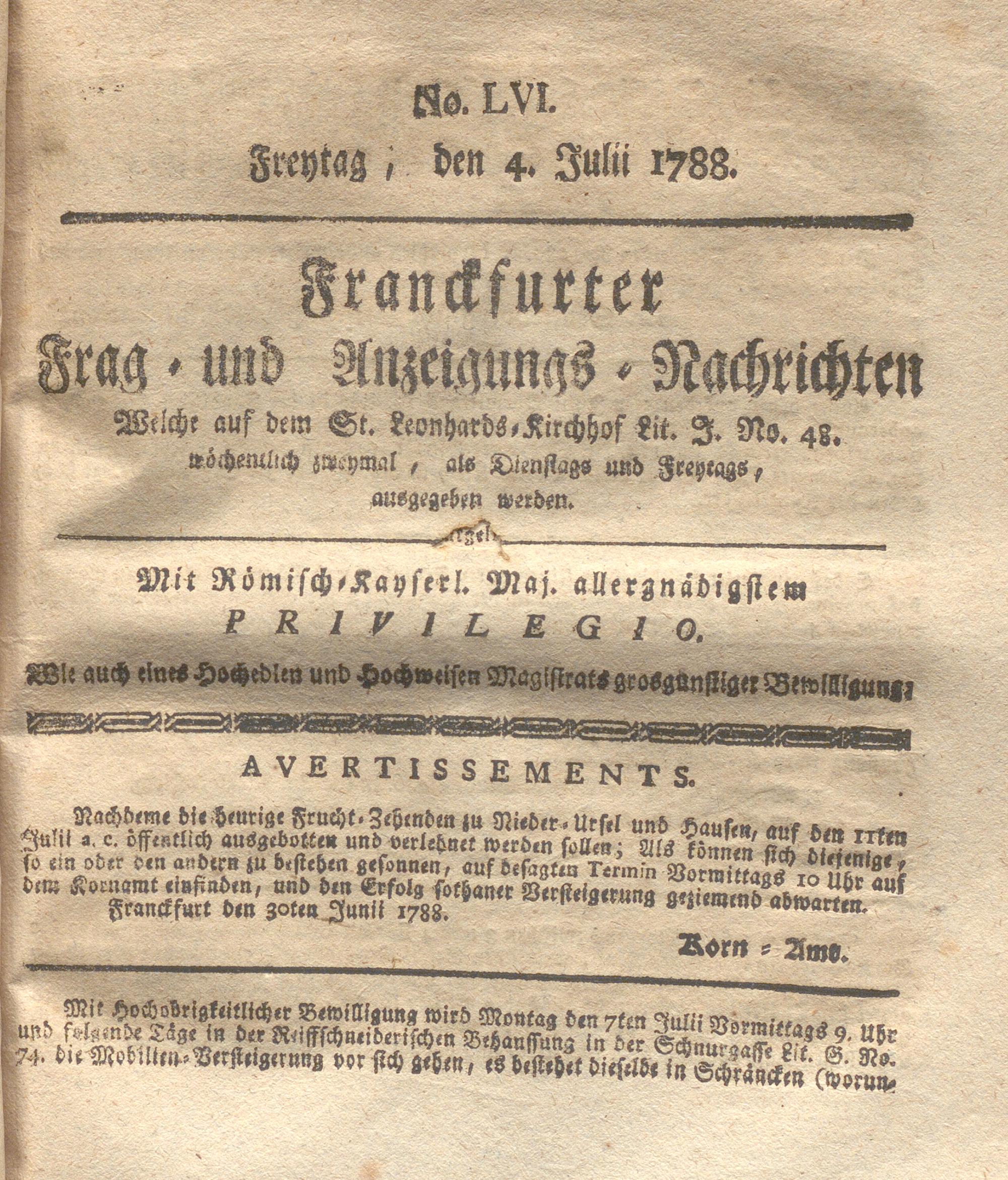 Franckfurter Frag- und Anzeige-Nachricht...