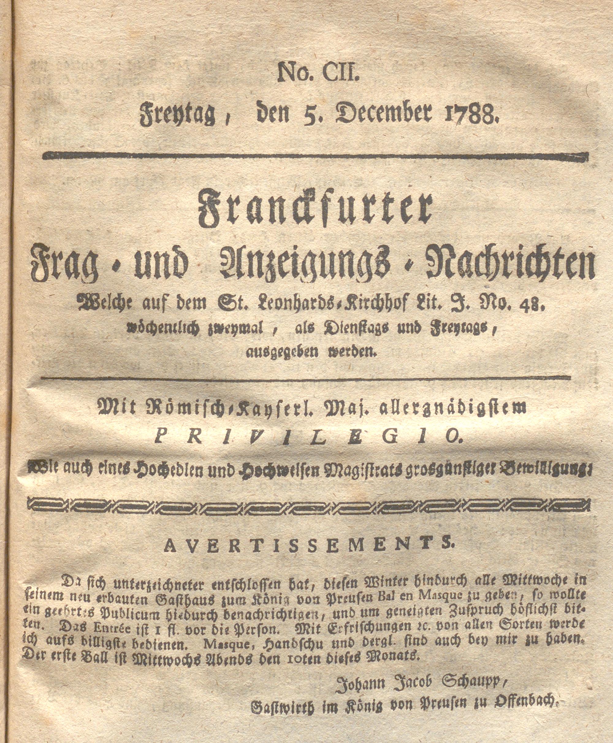 Franckfurter Frag- und Anzeige-Nachricht...