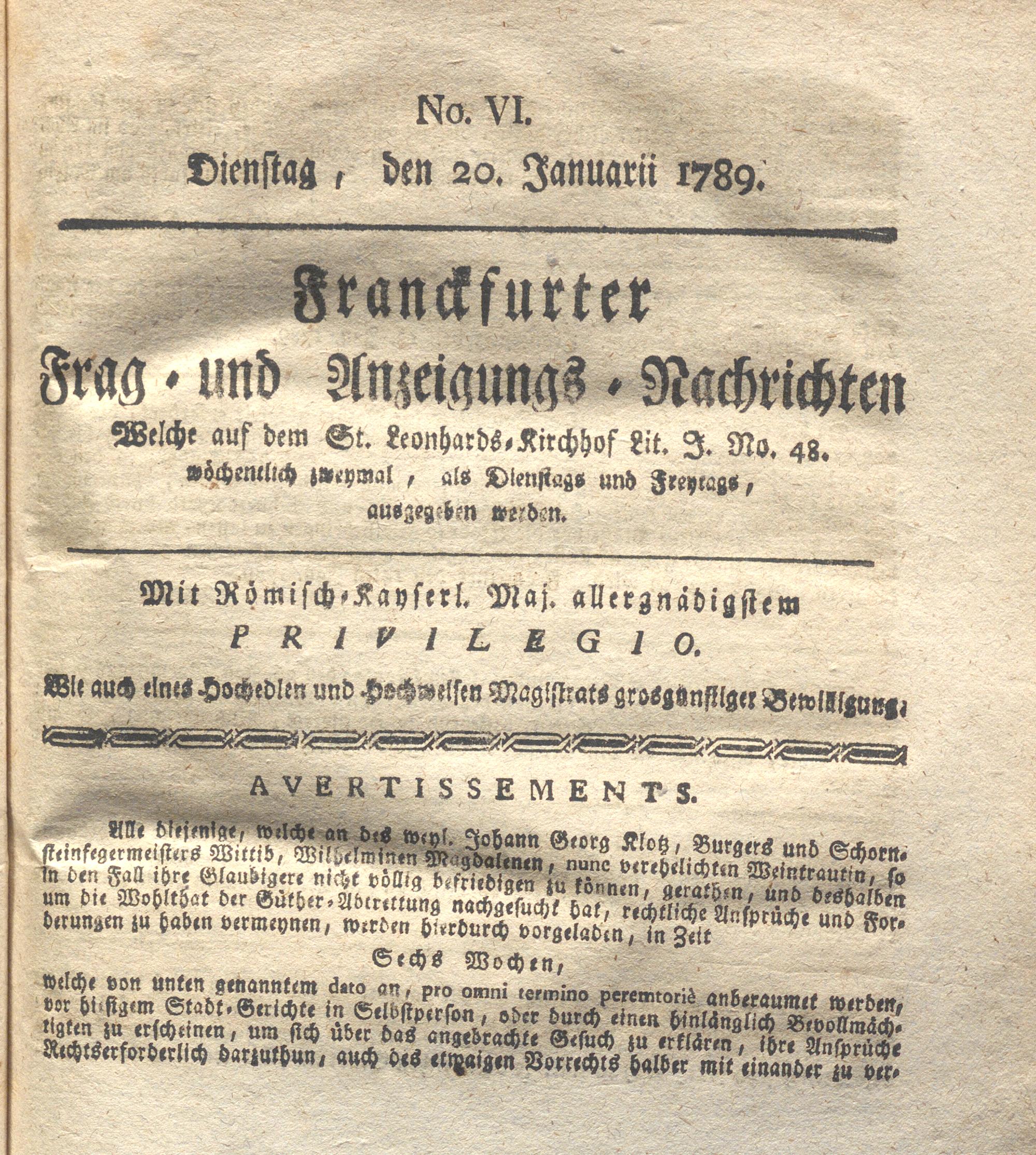 Franckfurter Frag- und Anzeige-Nachricht...