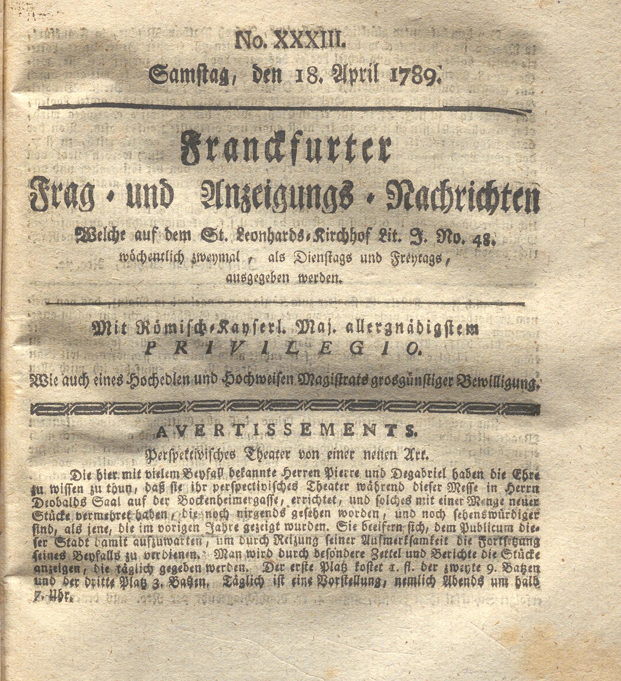 Franckfurter Frag- und Anzeige-Nachricht...