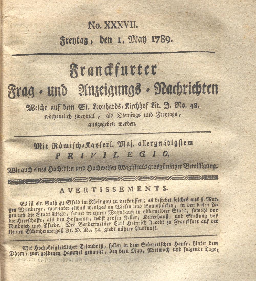 Franckfurter Frag- und Anzeige-Nachricht...