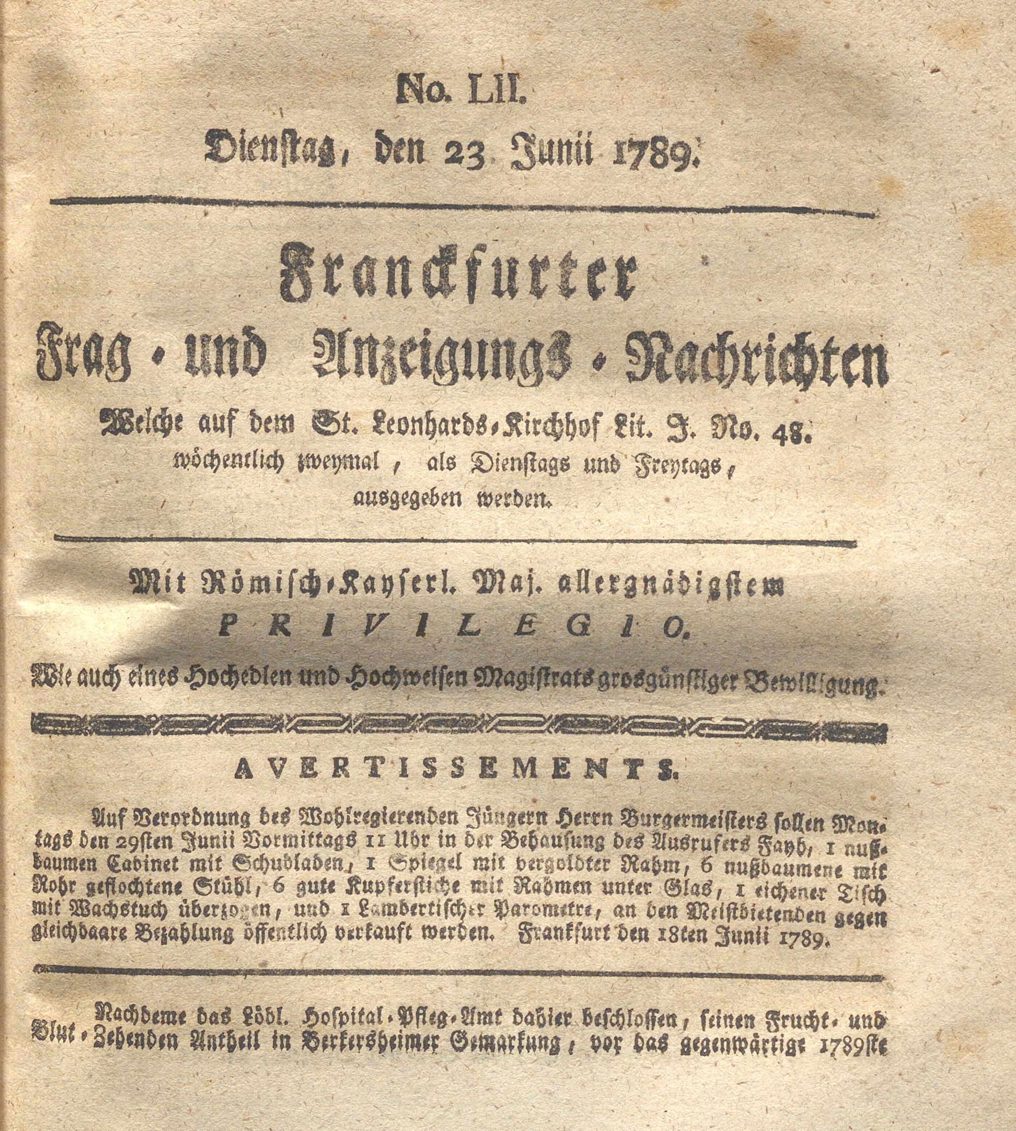 Franckfurter Frag- und Anzeige-Nachricht...