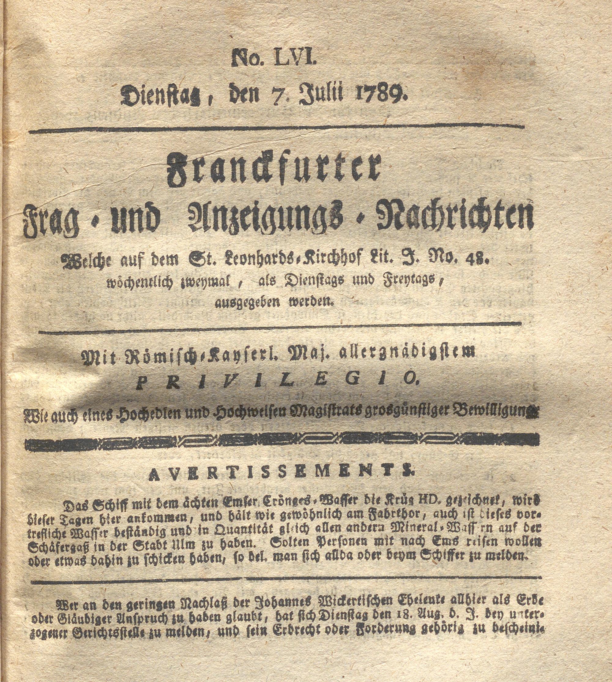 Franckfurter Frag- und Anzeige-Nachricht...